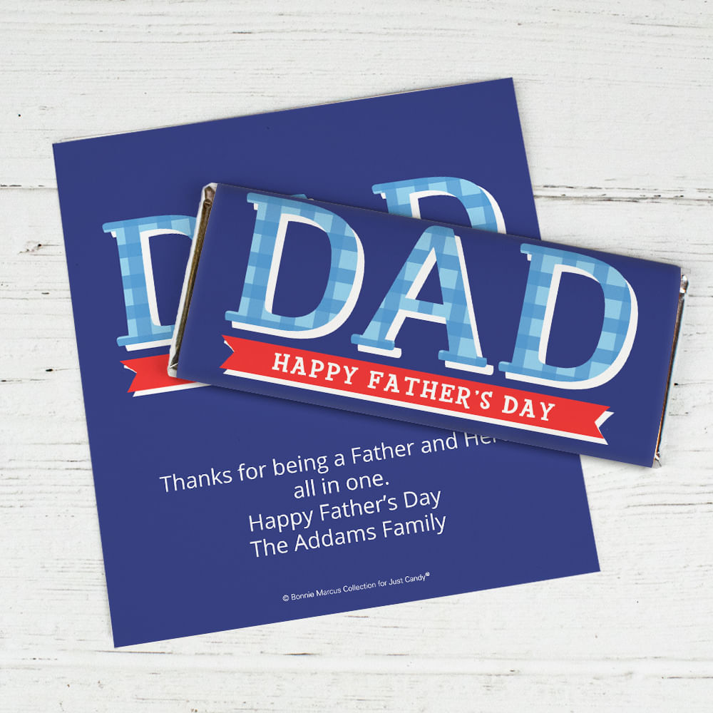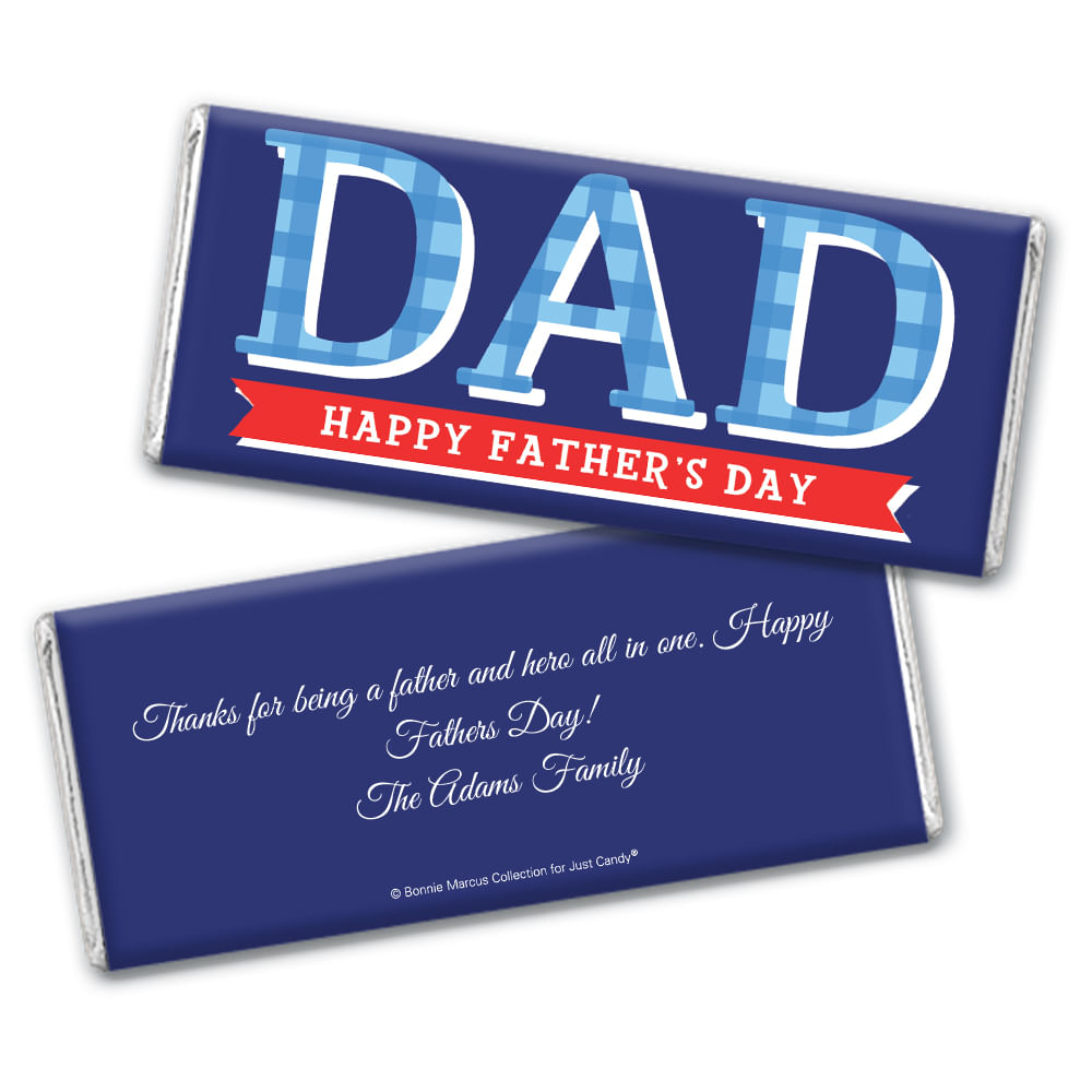 Personalized Bonnie Marcus Collection Father's Day Plaid Chocolate Bar Wrappers
