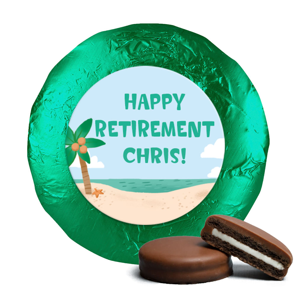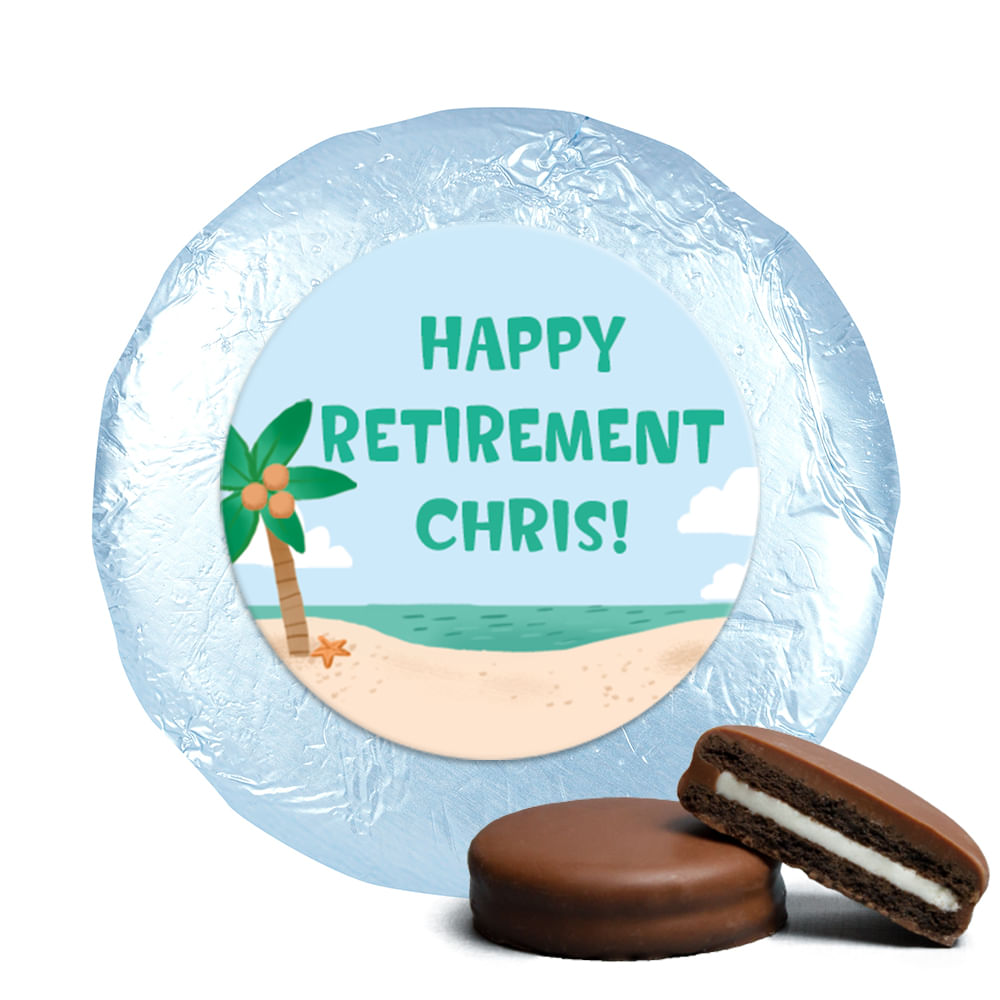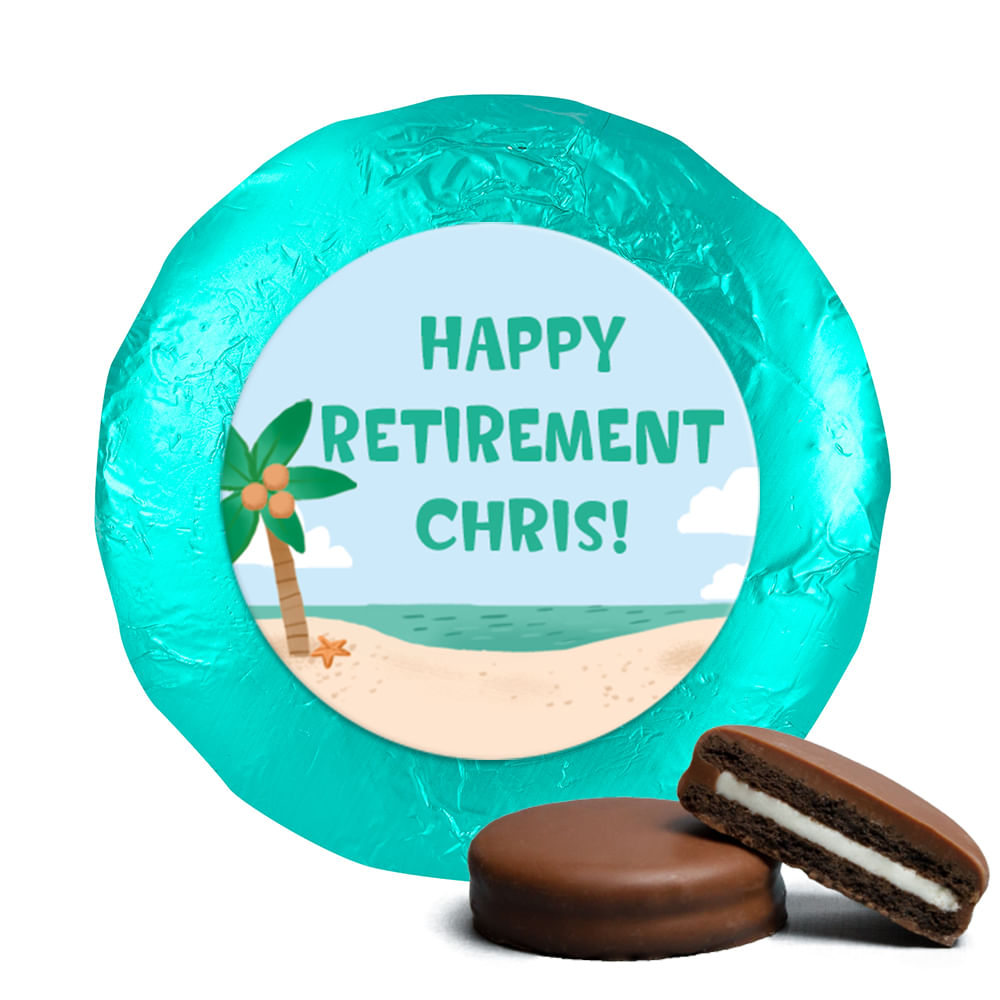 Personalized Bonnie Marcus Collection Retirement Beach Belgian Chocolate Covered Oreos (24 Pack)