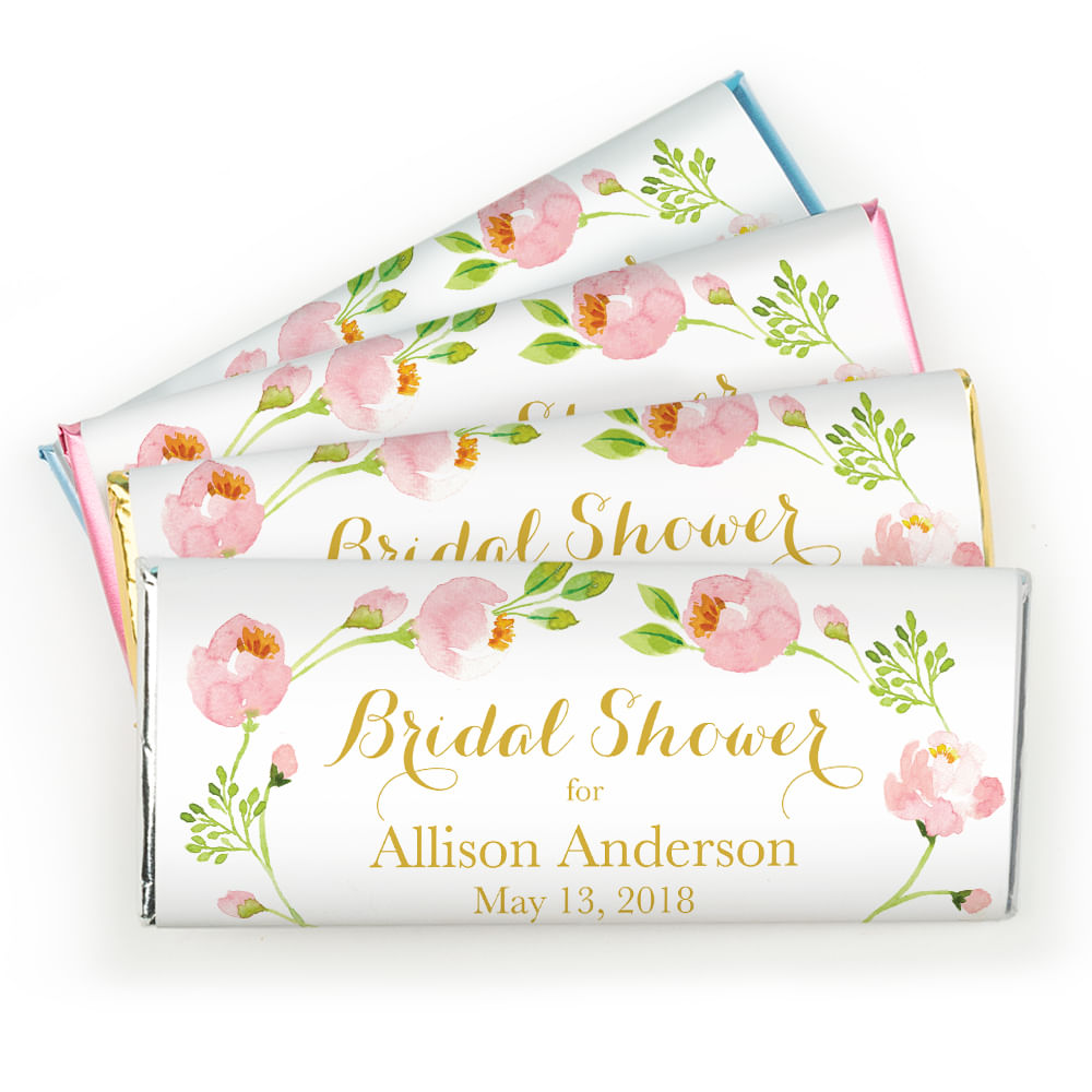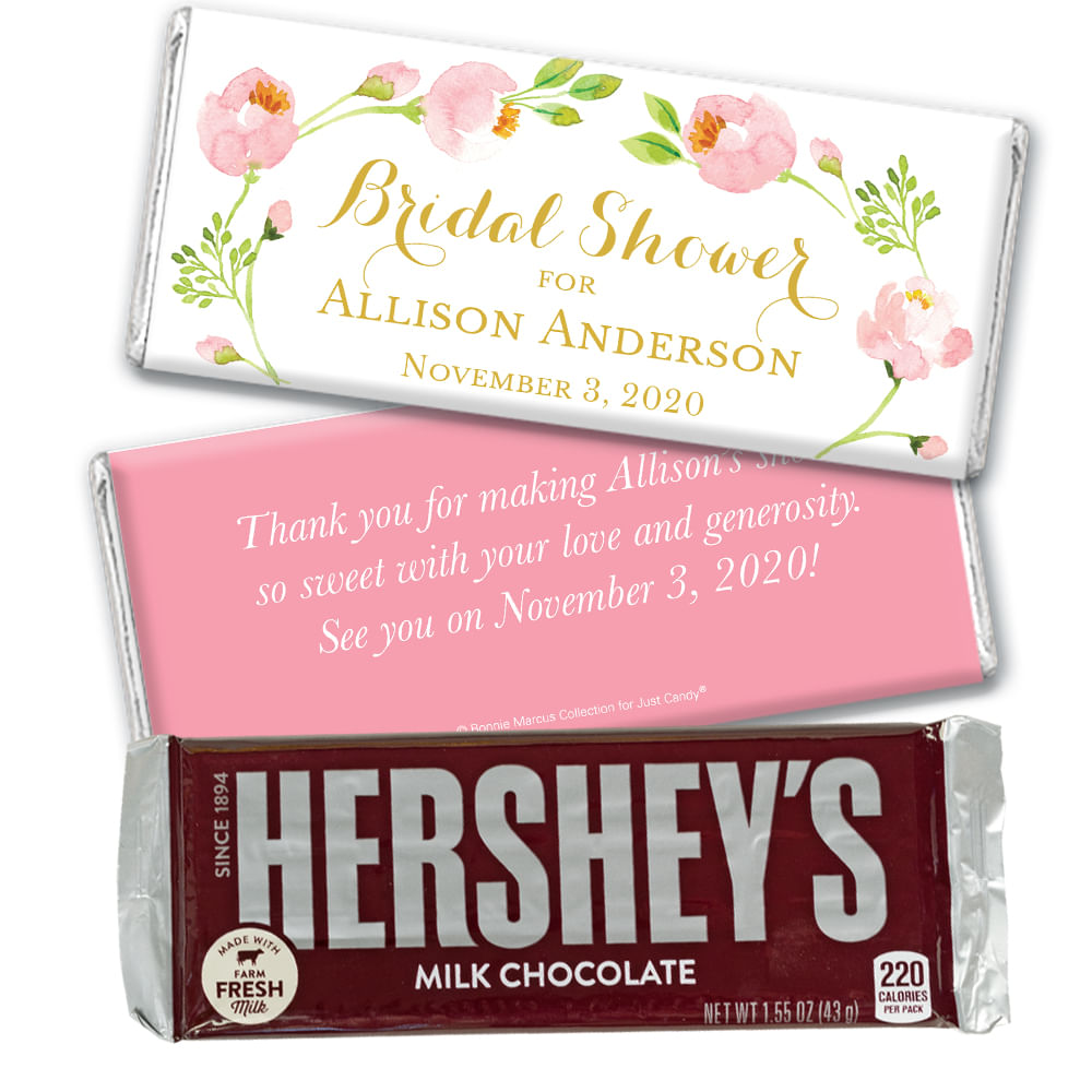 Personalized Bonnie Marcus Bridal Shower Botanical Wreath Hershey's Milk Chocolate Bar & Wrapper