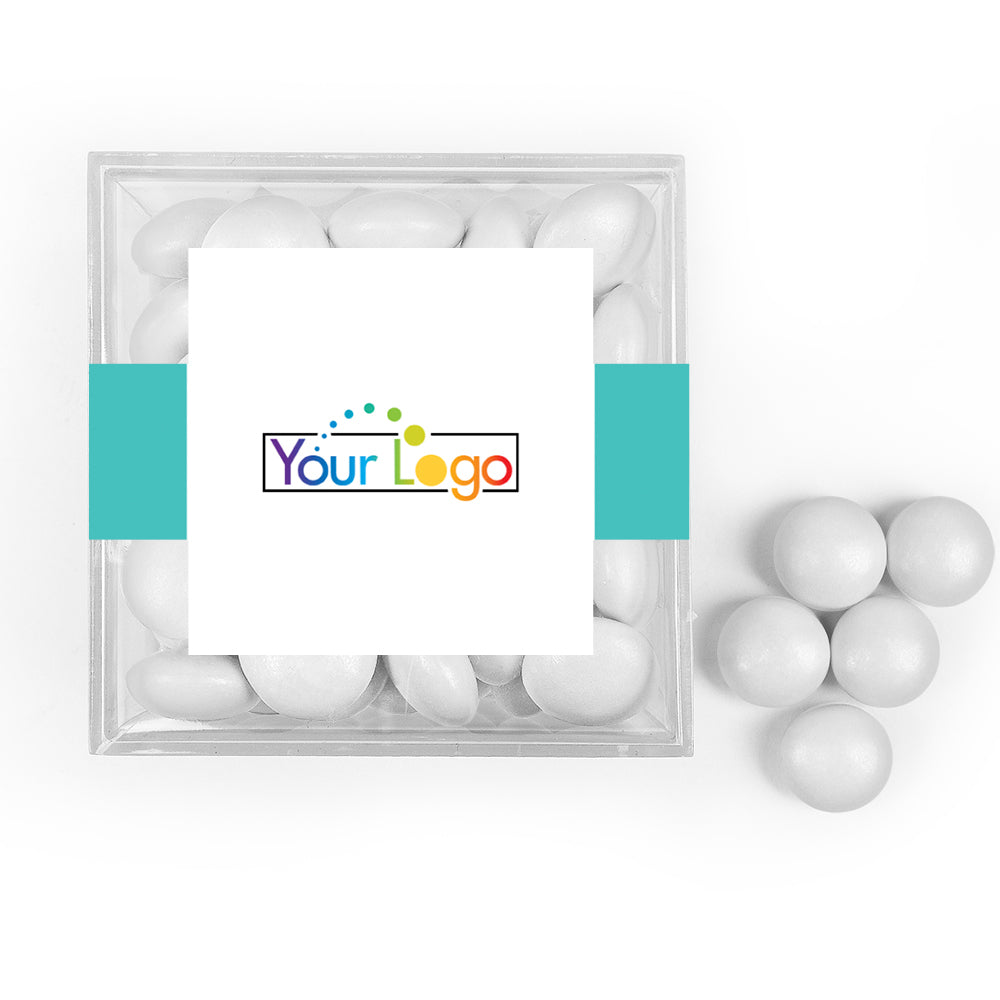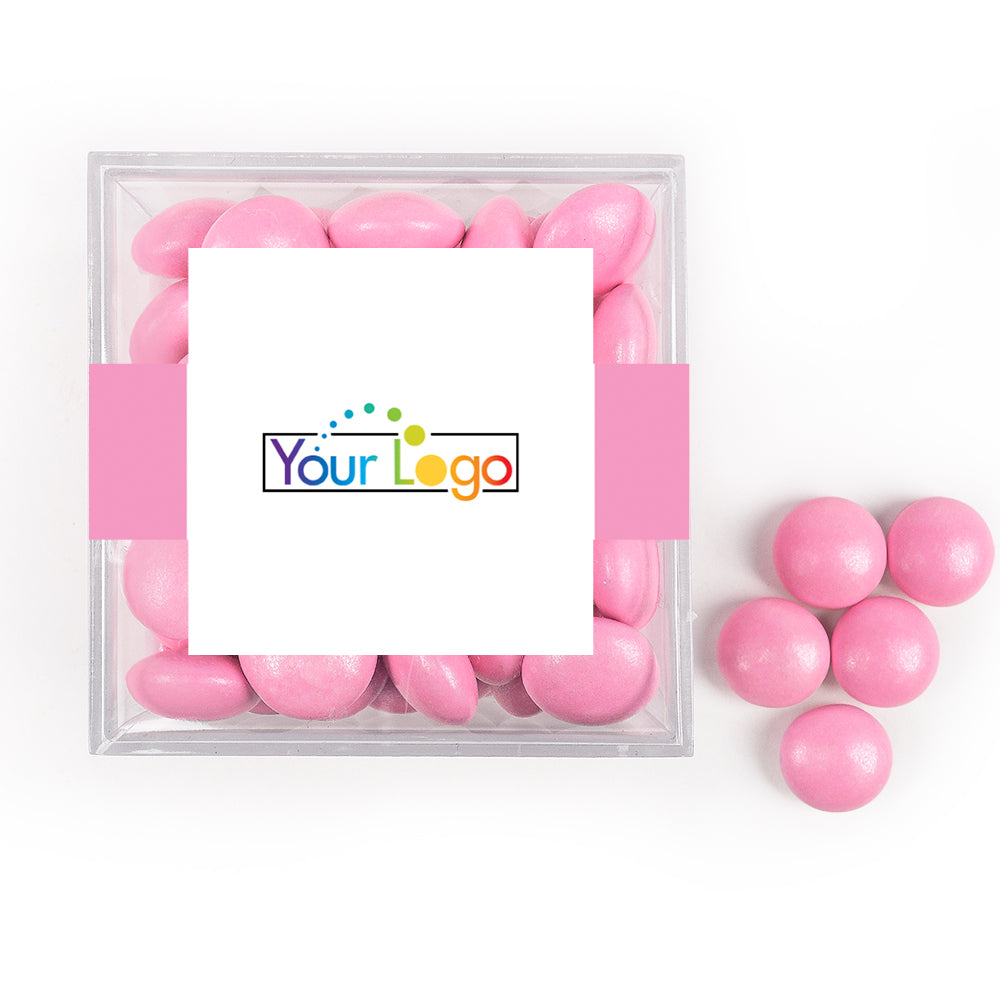 Custom Add Your Logo JUST CANDY favor cube with Just Candy Milk Chocolate Minis