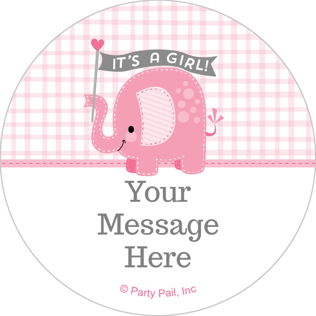 Umbrellaphants Pink Girl Personalized 2" Stickers (20 Stickers)