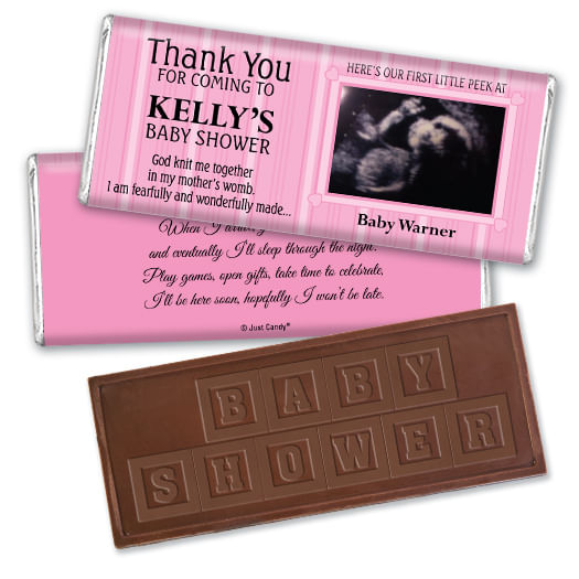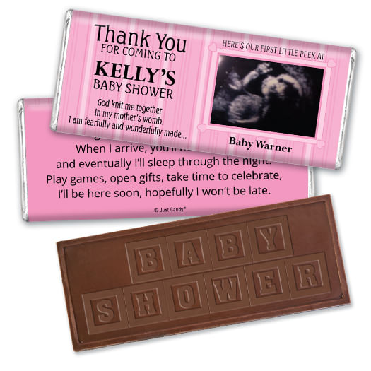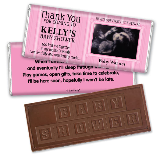 Baby Shower Personalized Embossed Chocolate Bar Stripes Sonogram Photo