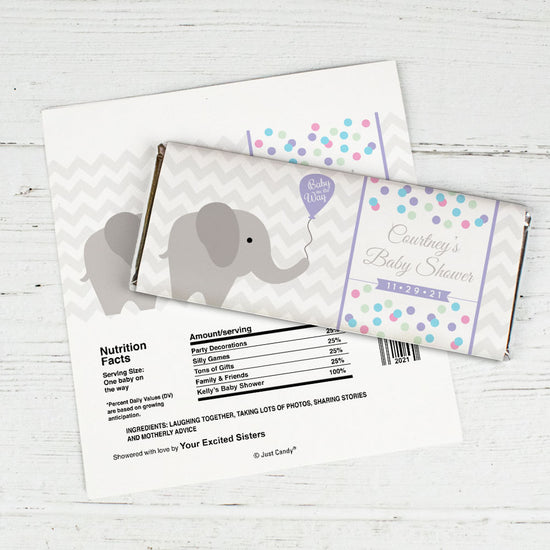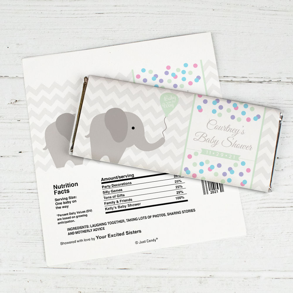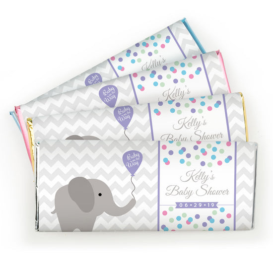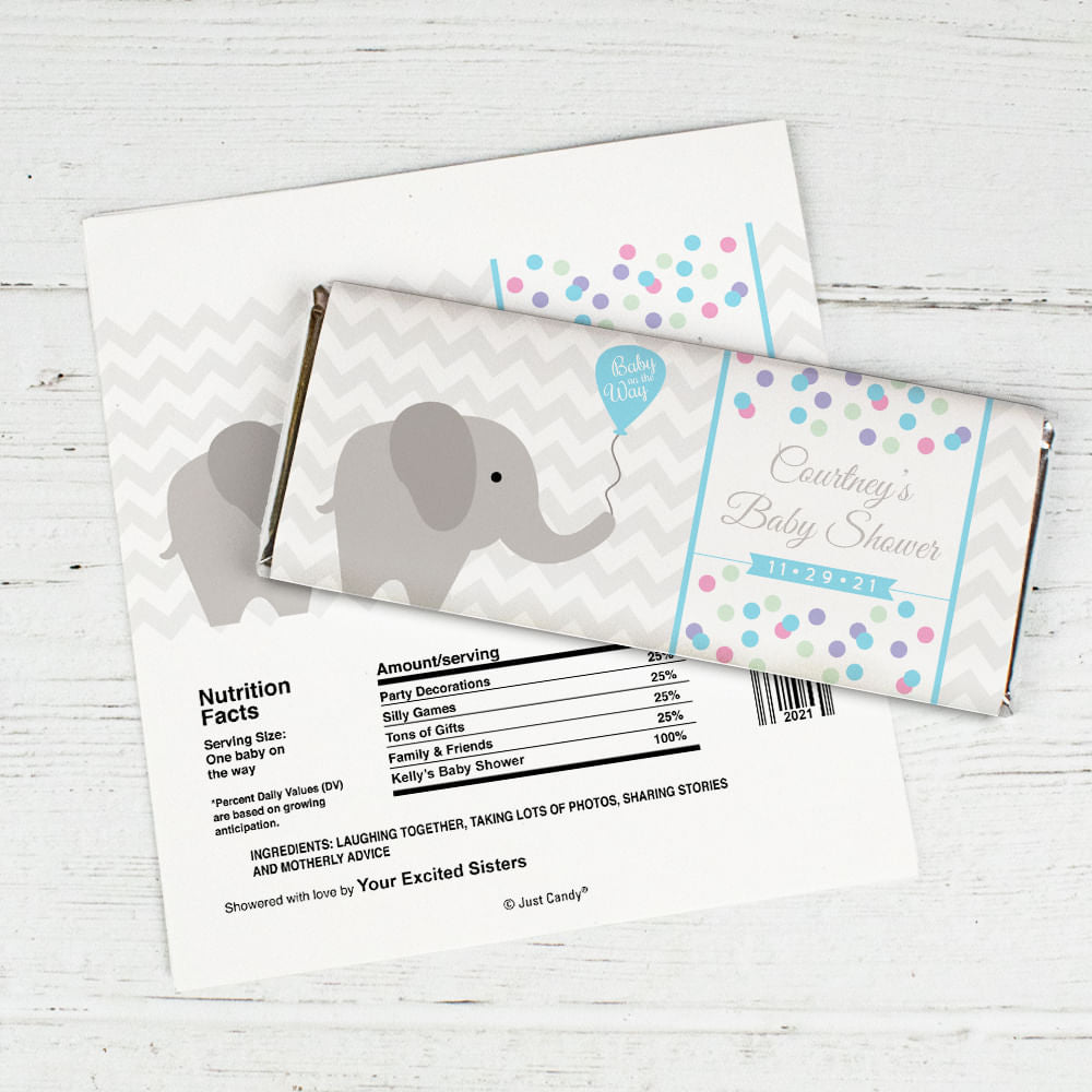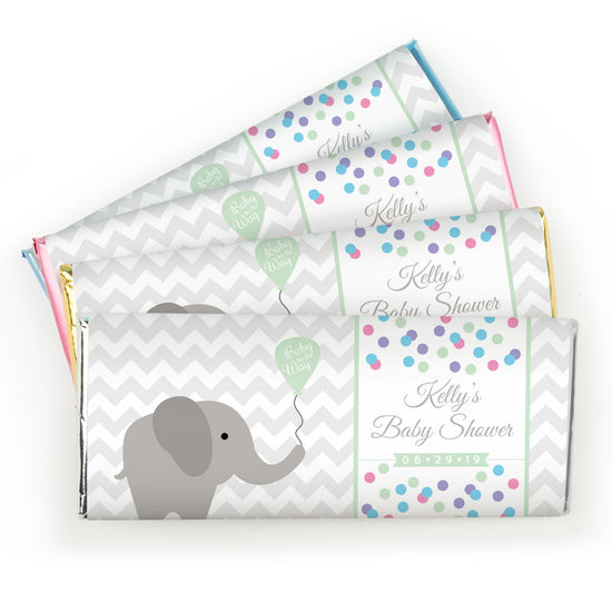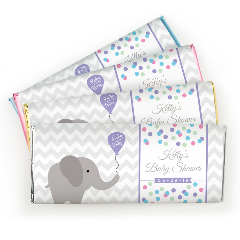 Baby Shower Personalized Chocolate Bar Wrappers Chevron Dots Elephant