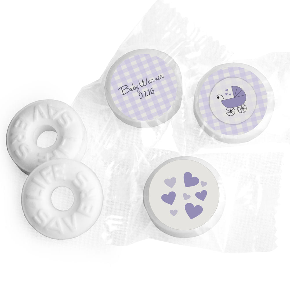 Baby Shower Personalized Life Savers Mints Gingham Carriage