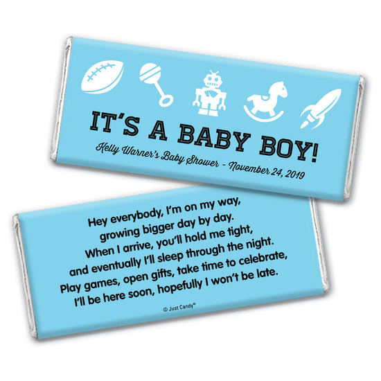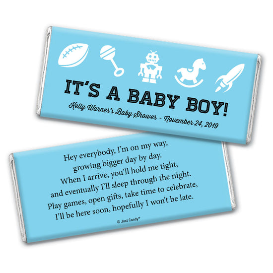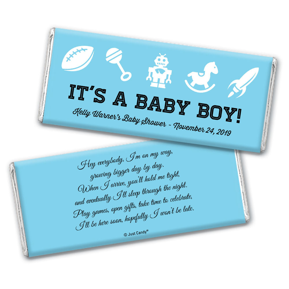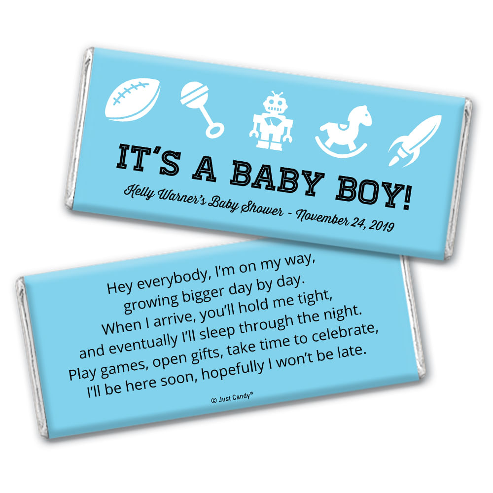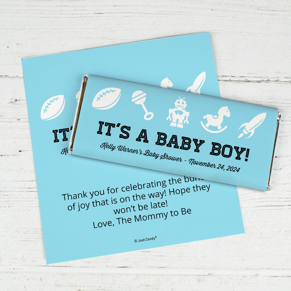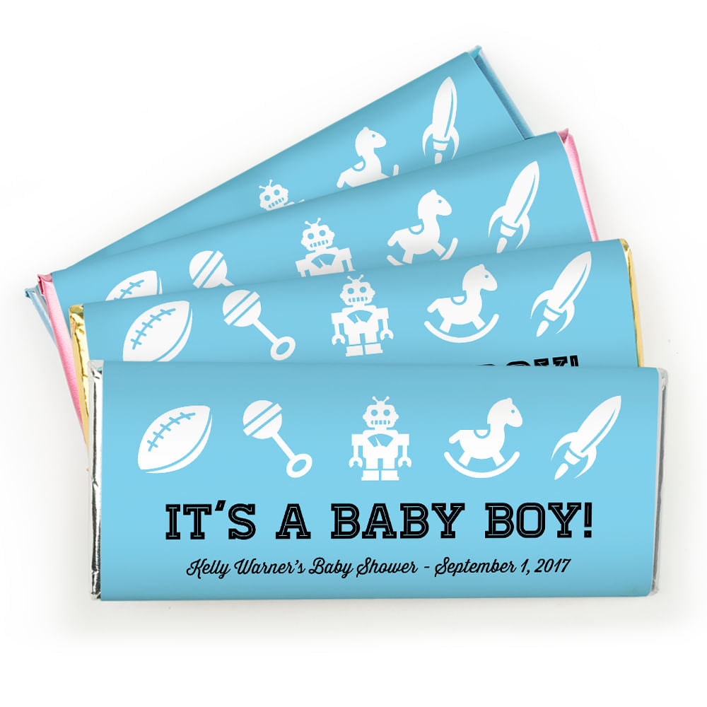 Baby Shower Personalized Chocolate Bar Wrappers Rockets Robots Rattles "It's a Boy"
