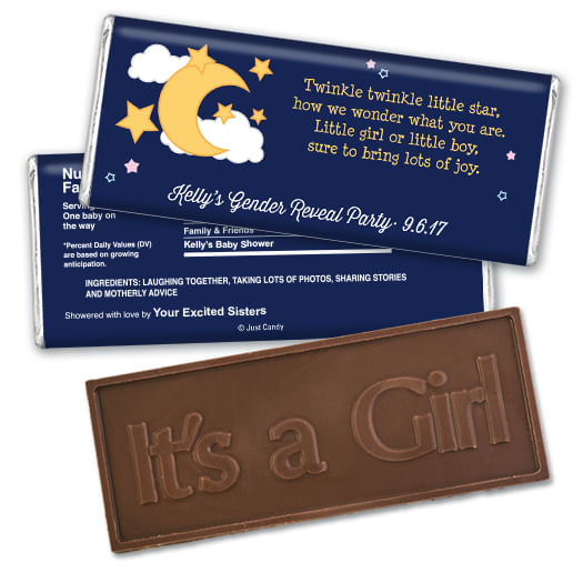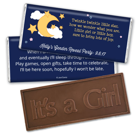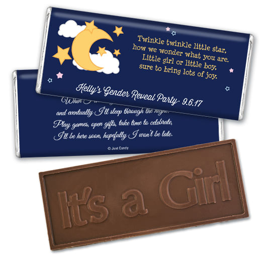 Gender Reveal Baby Shower Embossed It's a Girl Chocolate Bar Twinkle Twinkle Star
