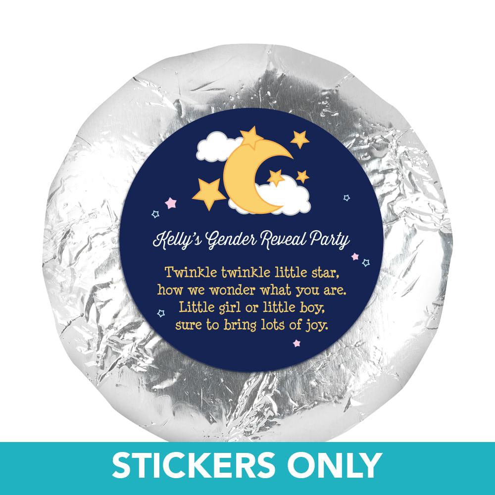Gender Reveal Baby Shower 1.25" Sticker Twinkle Twinkle Star (48 Stickers)