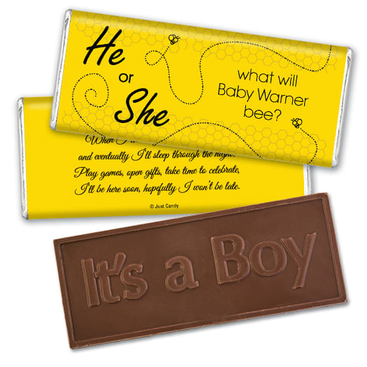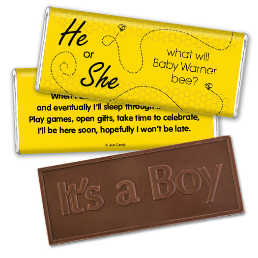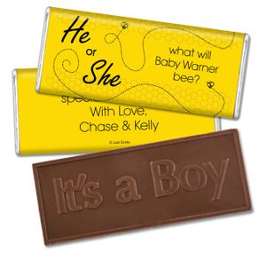 Gender Reveal Baby Shower Embossed It's a Boy Chocolate Bar Bumble Bee