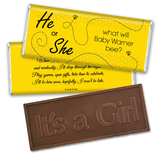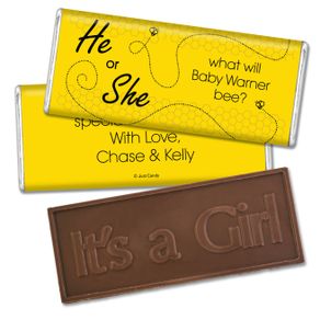 Gender Reveal Baby Shower Embossed It's a Girl Chocolate Bar Bumble Bee