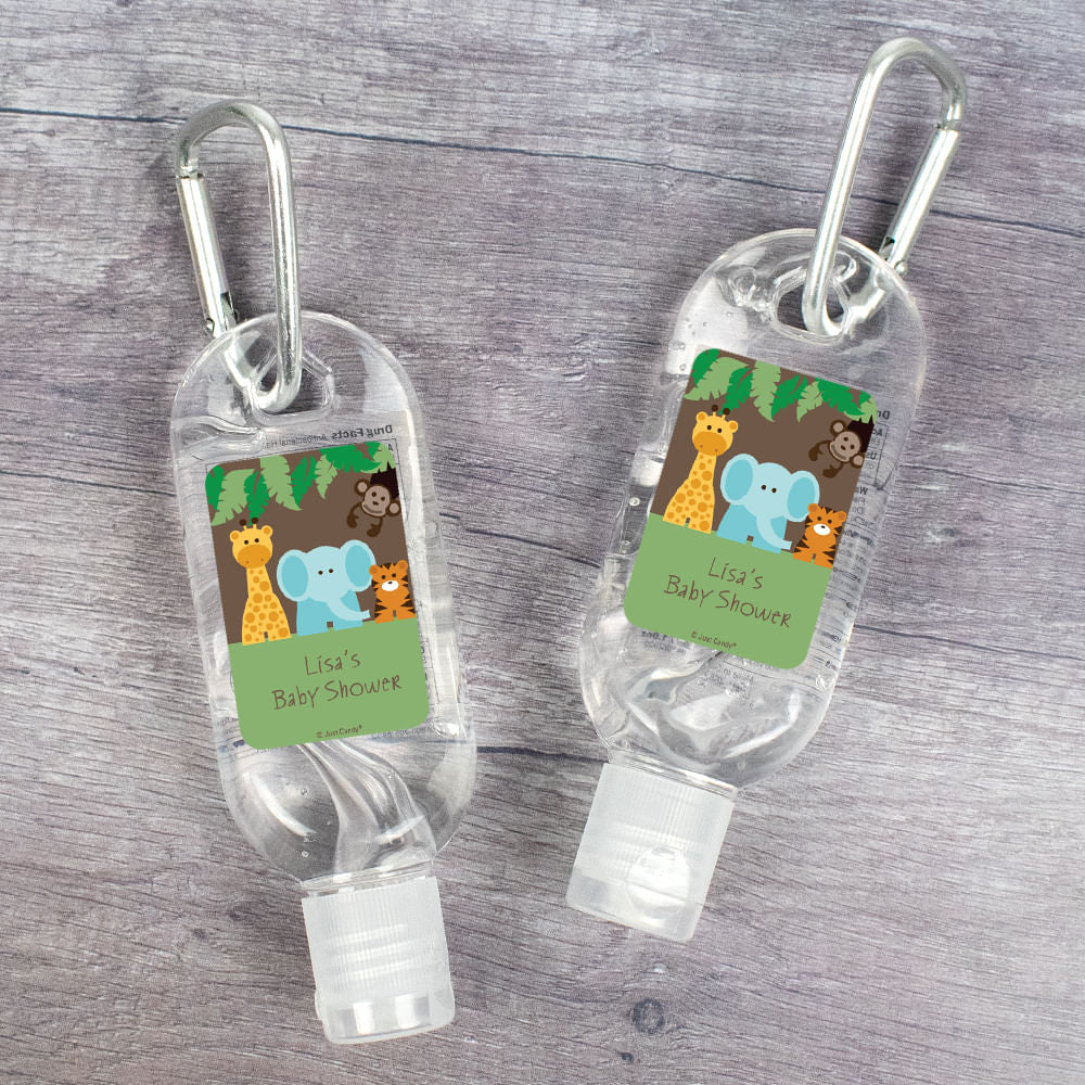 Personalized Baby Shower Jungle Buddies Hand Sanitizer with Carabiner 1.fl. Oz.