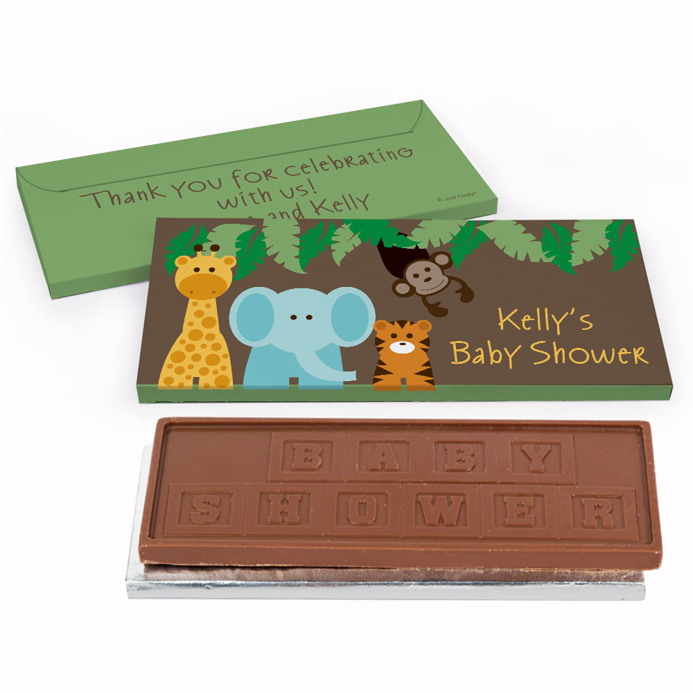 Deluxe Personalized Baby Shower Jungle Safari Chocolate Bar in Gift Box