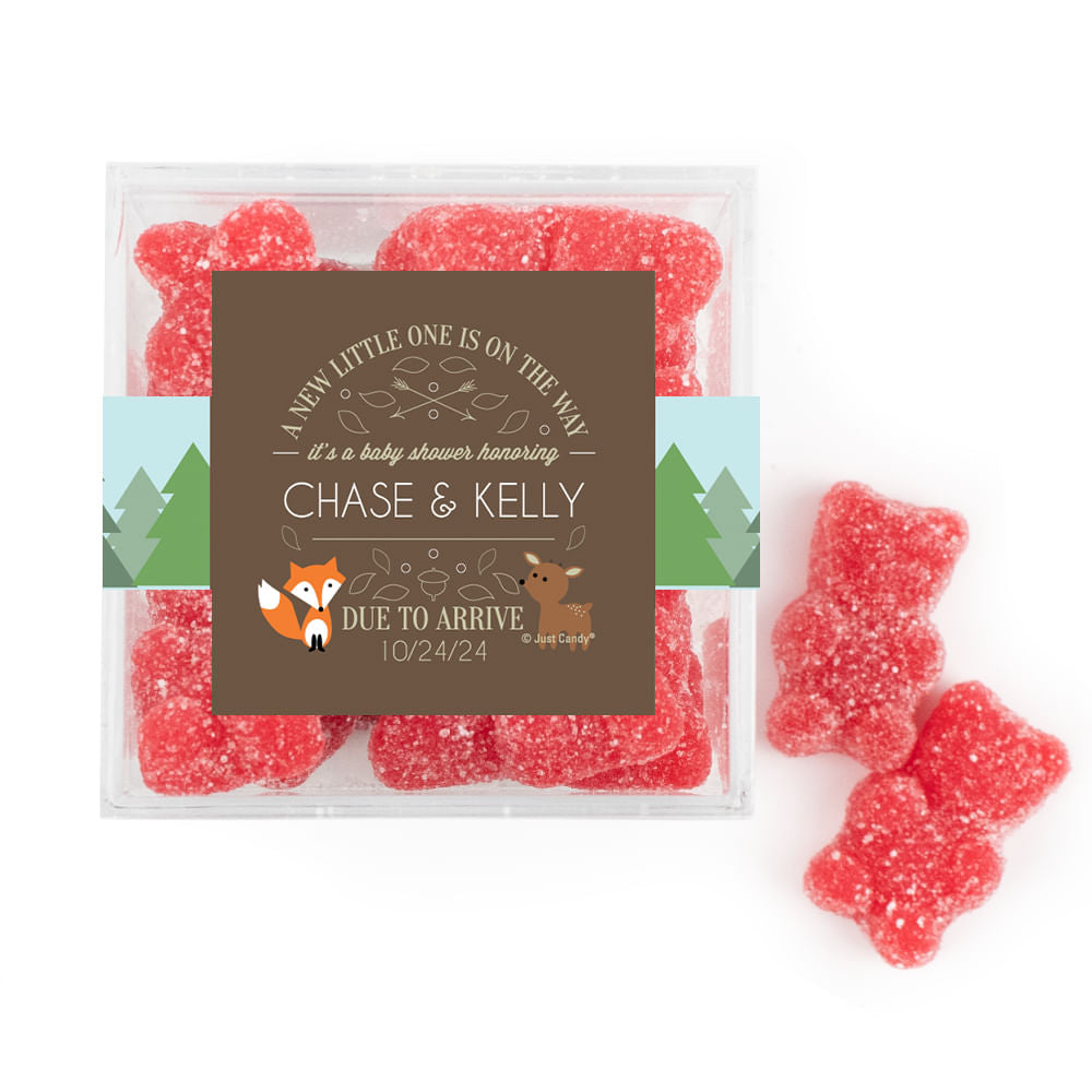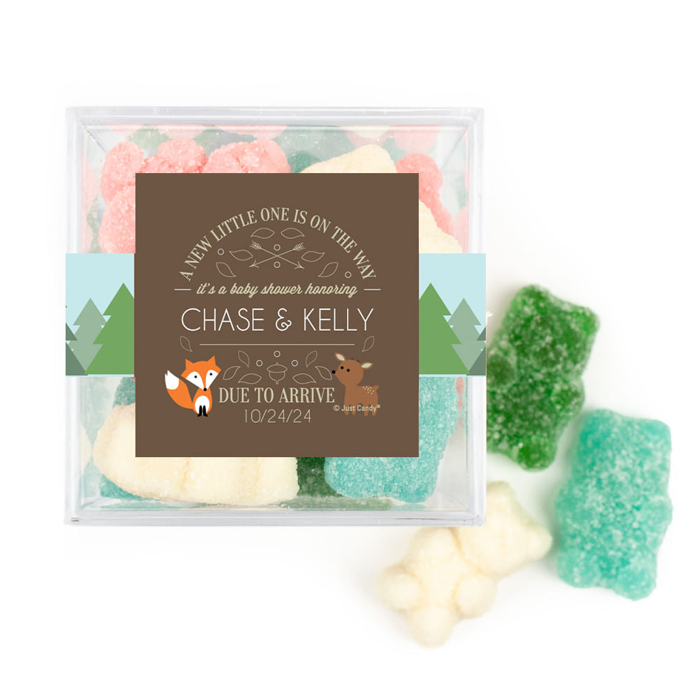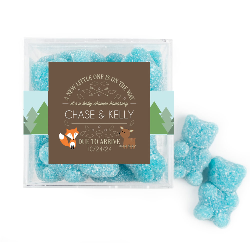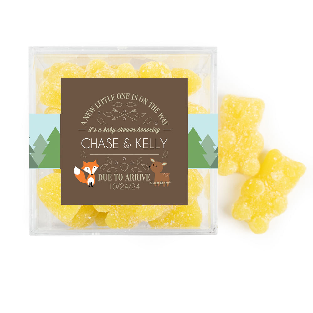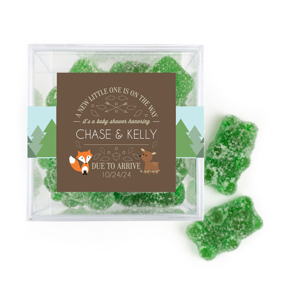 Personalized Baby Shower Forest Friends Favor Cube with Gummy Bears