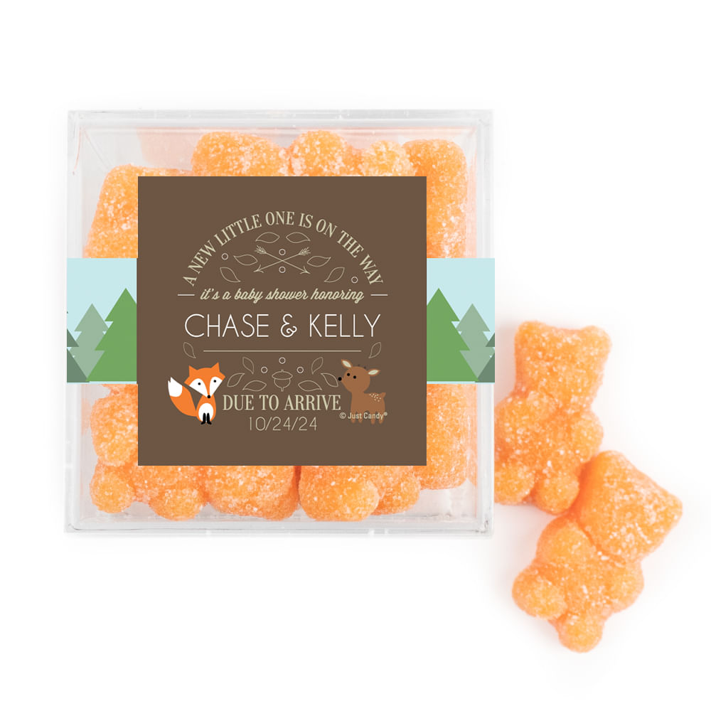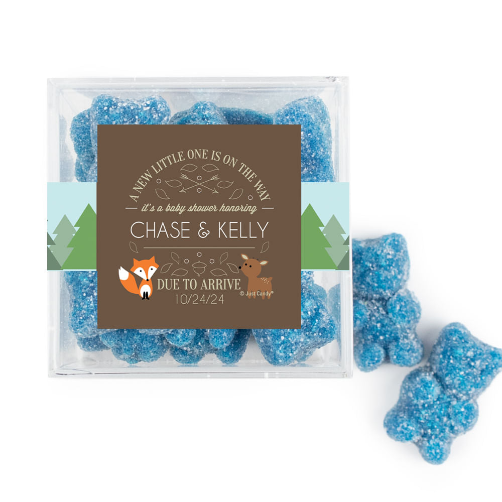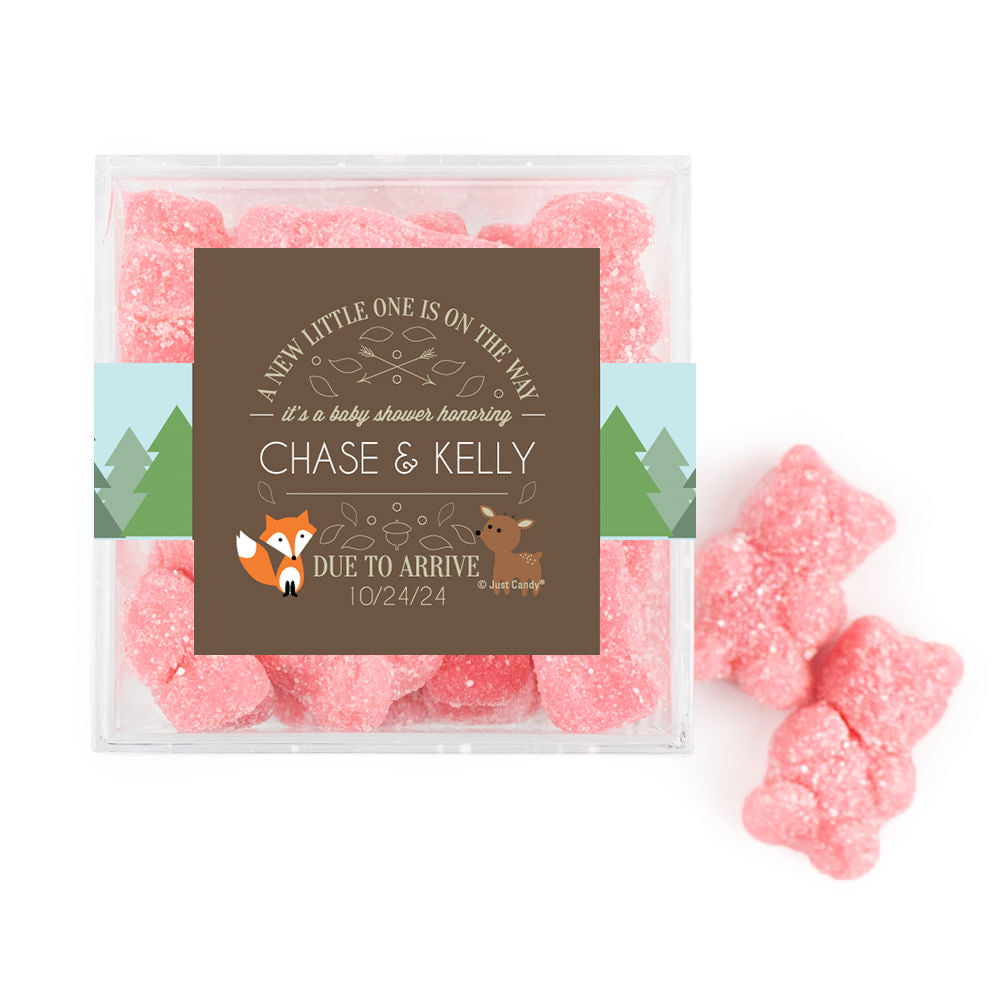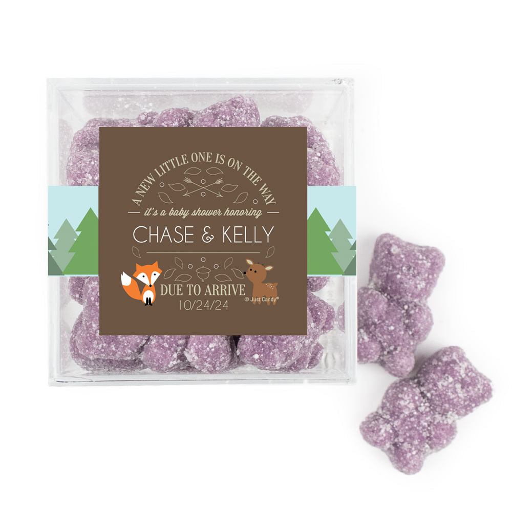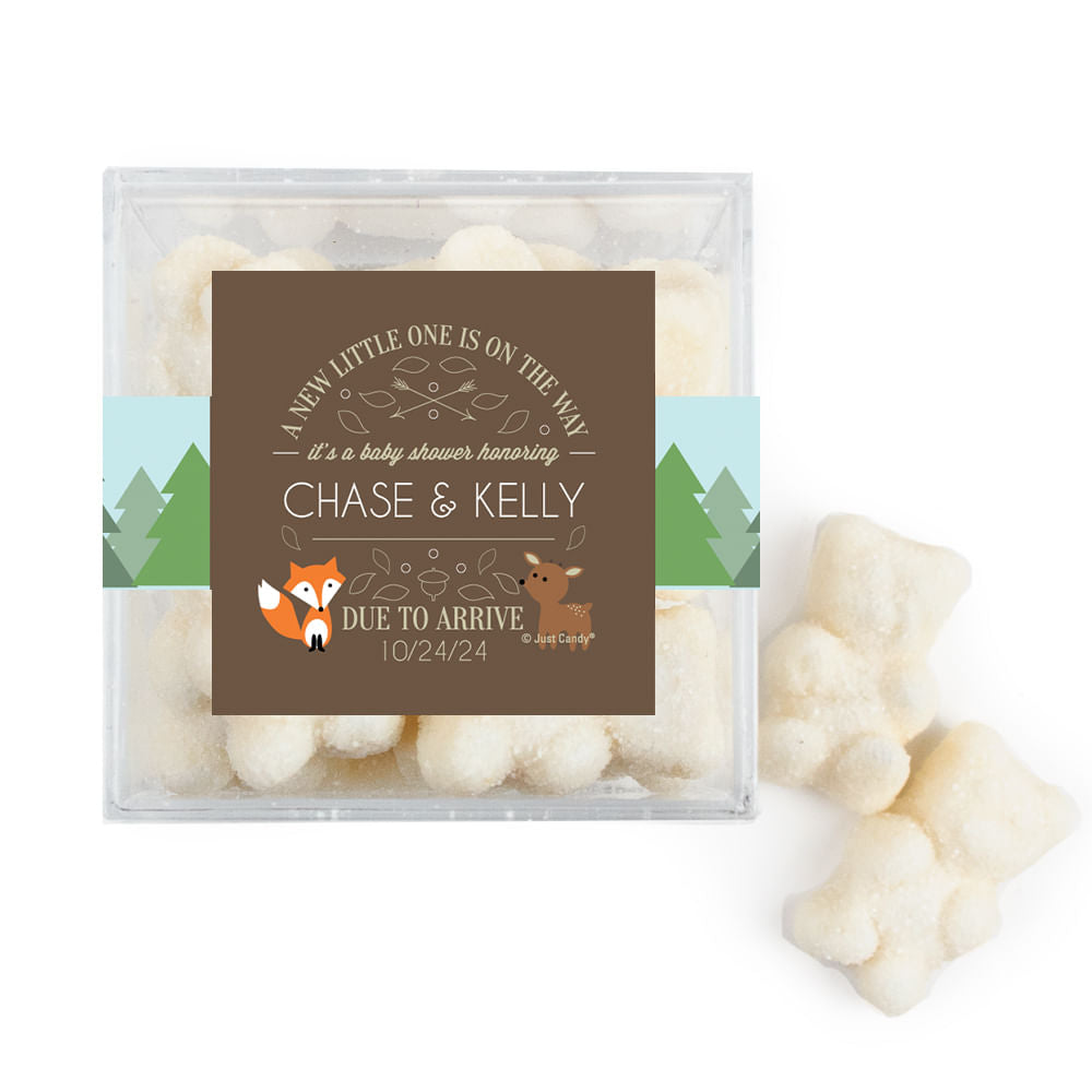 Personalized Baby Shower Forest Friends Favor Cube with Gummy Bears