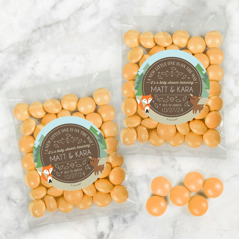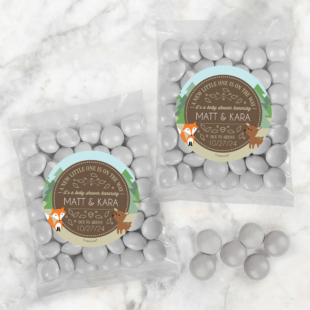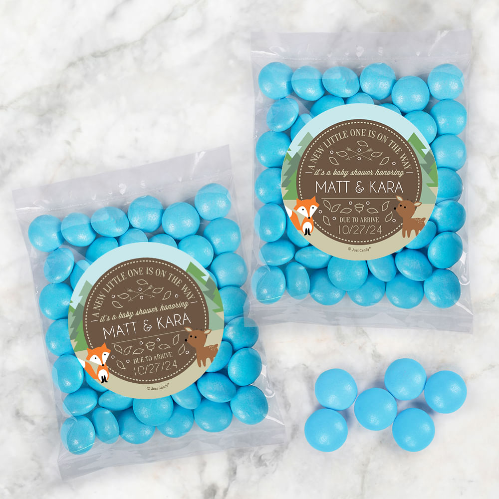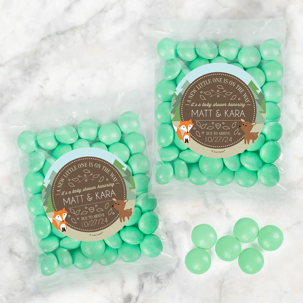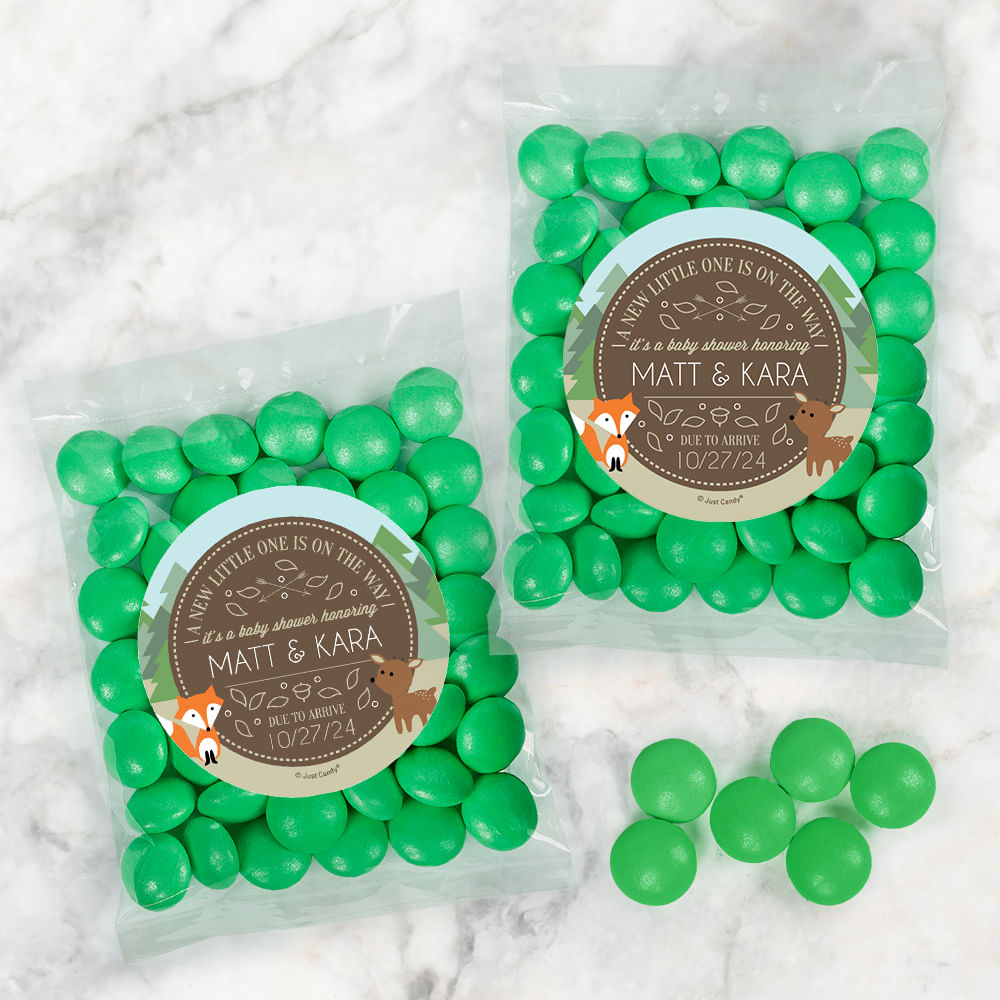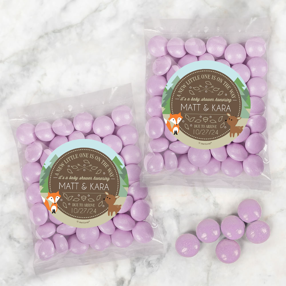 Personalized Baby Shower Forest Friends Candy Bags with Just Candy Milk Chocolate Gems