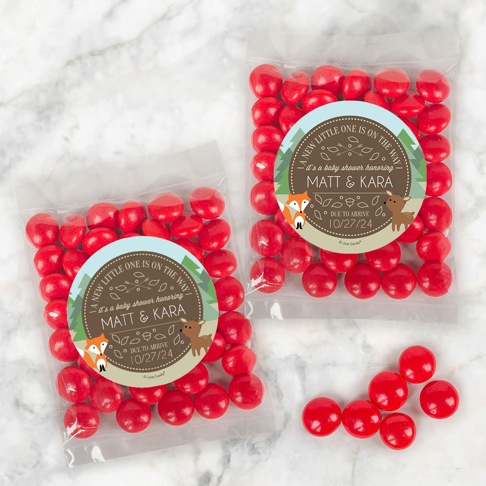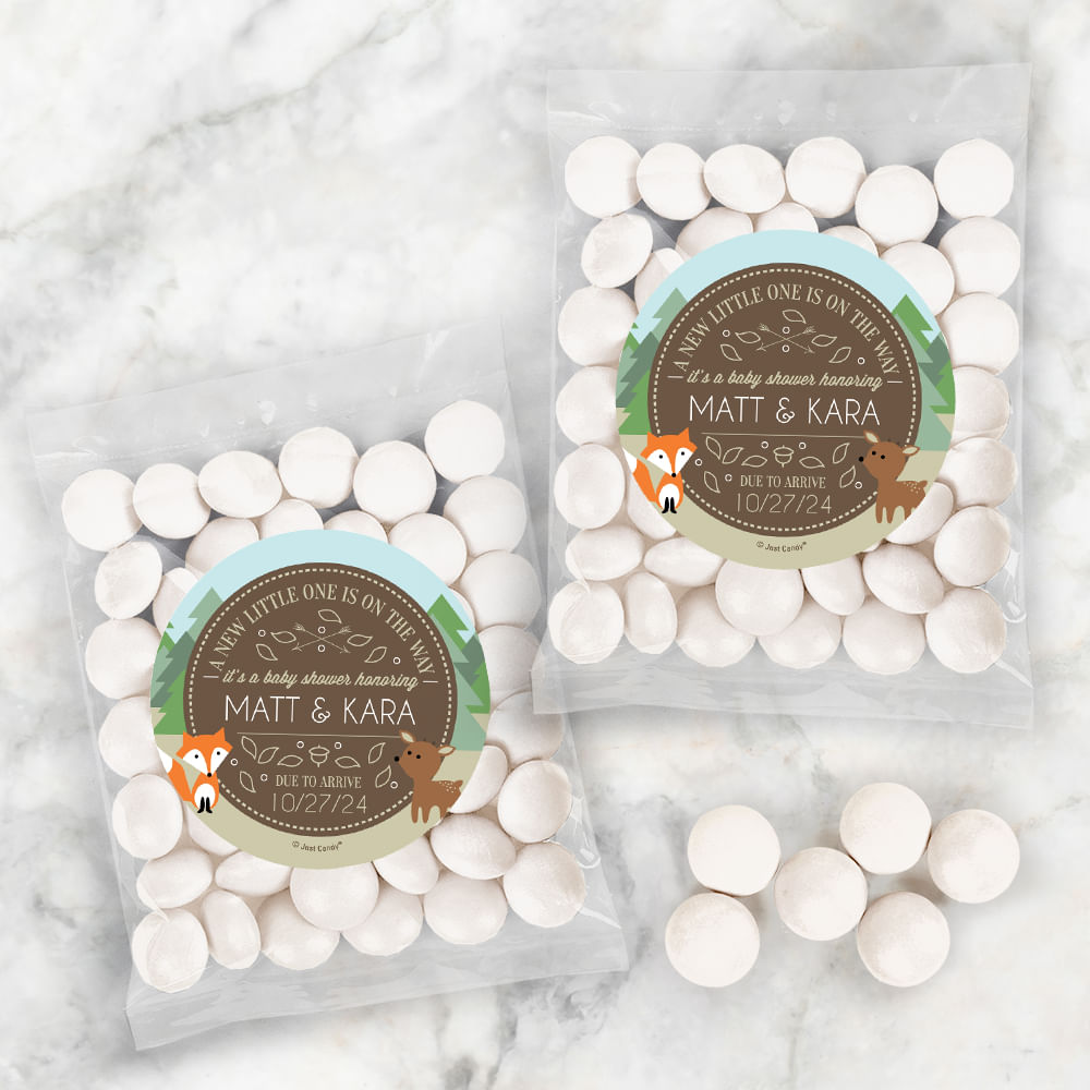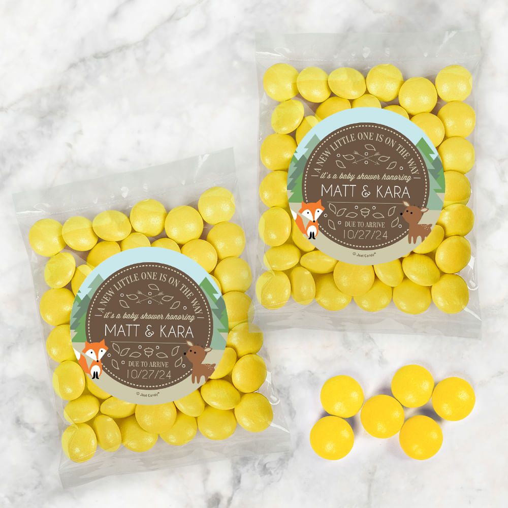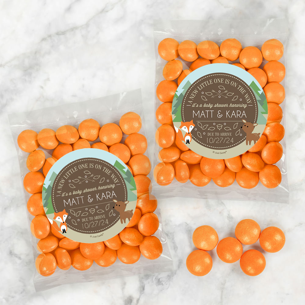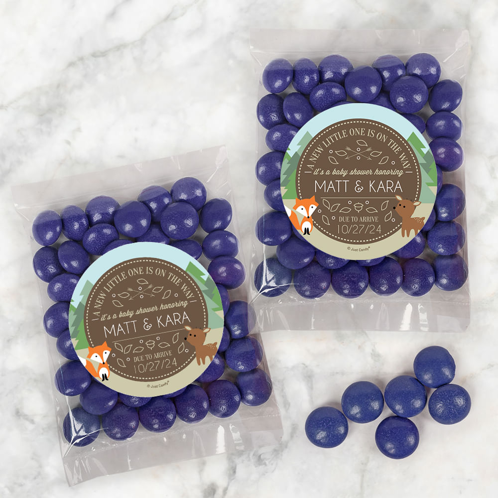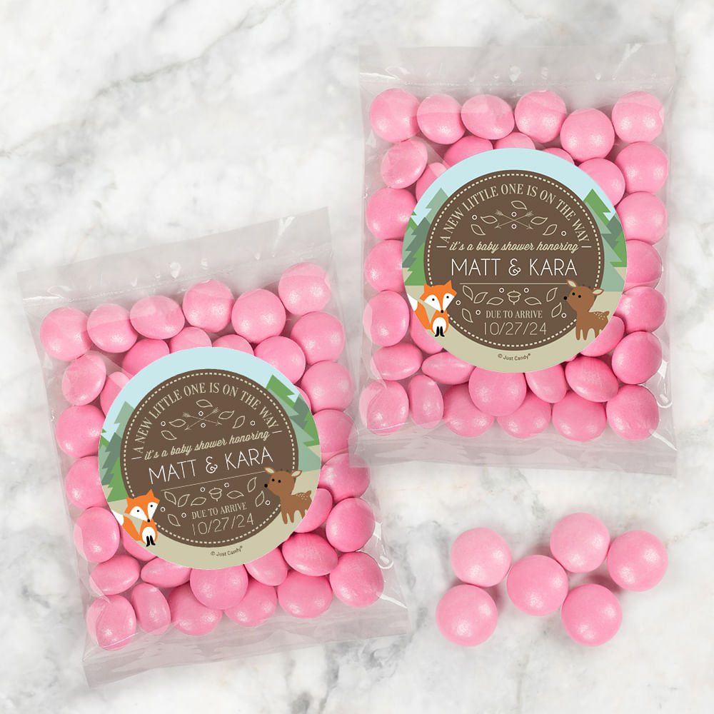 Personalized Baby Shower Forest Friends Candy Bags with Just Candy Milk Chocolate Gems