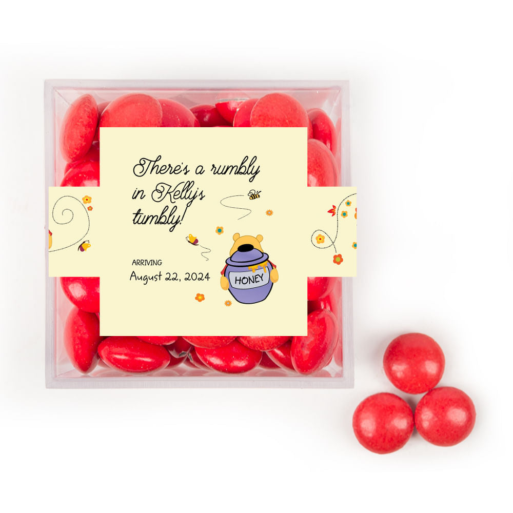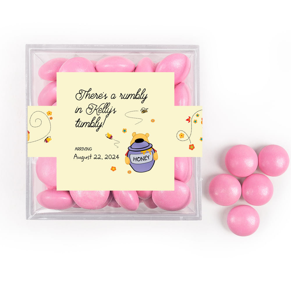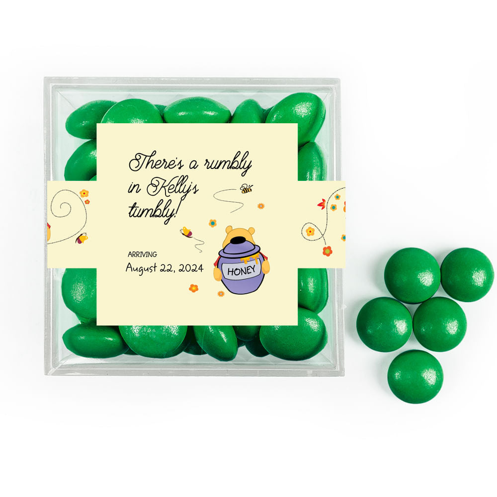 Personalized Baby Shower Pooh Favor Cube with Milk Chocolate Minis