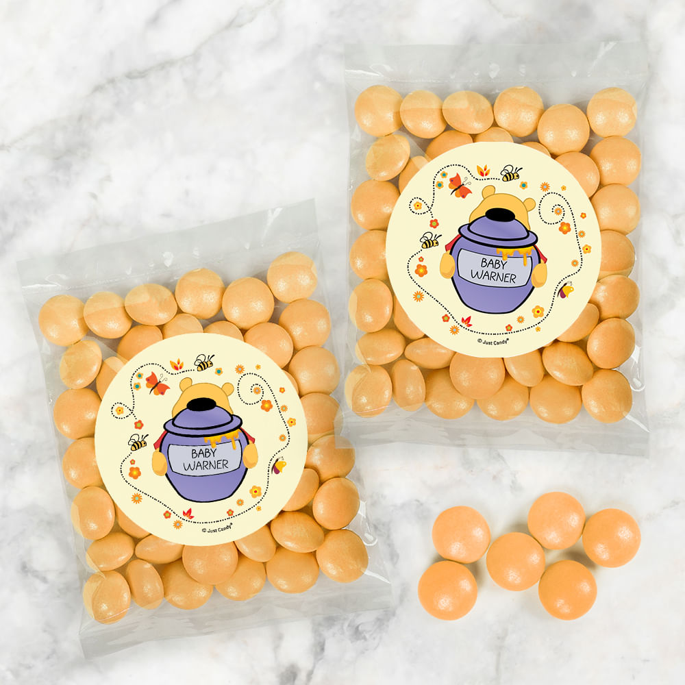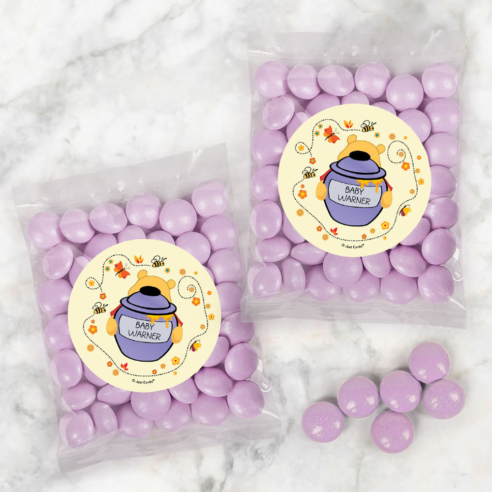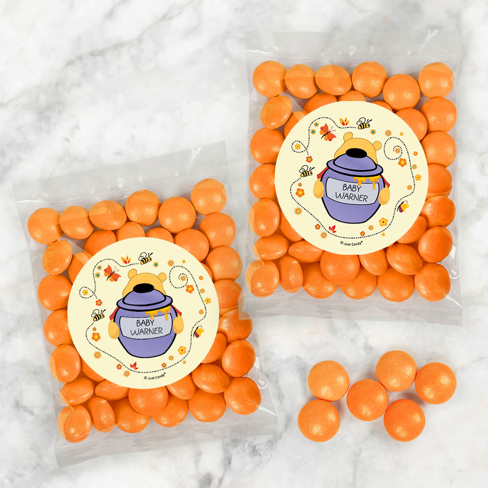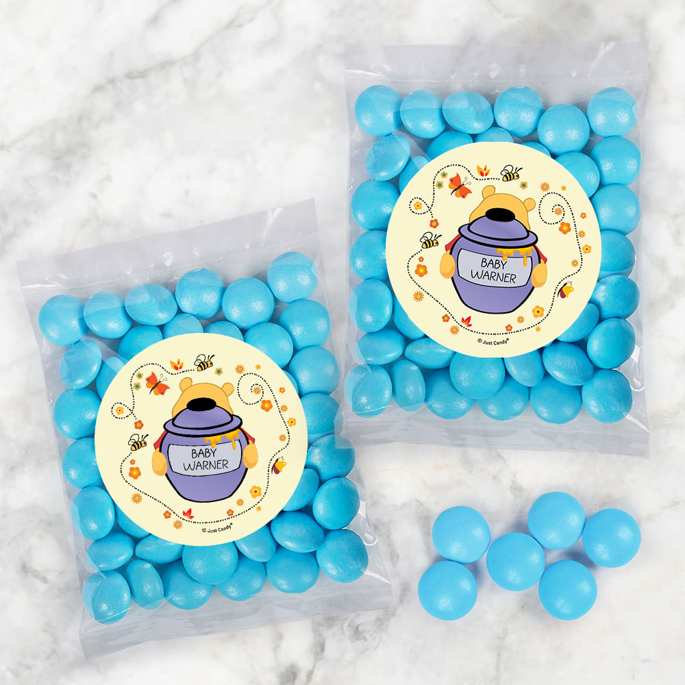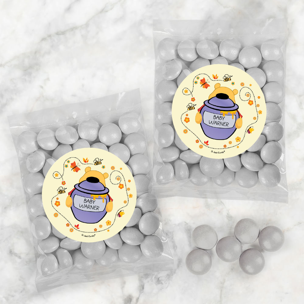 Personalized Baby Shower Pooh Candy Bags with Just Candy Milk Chocolate Gems