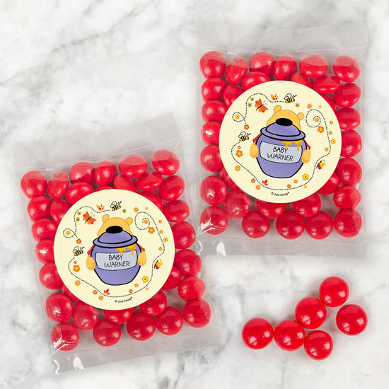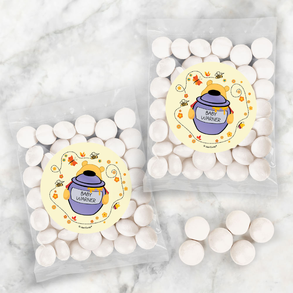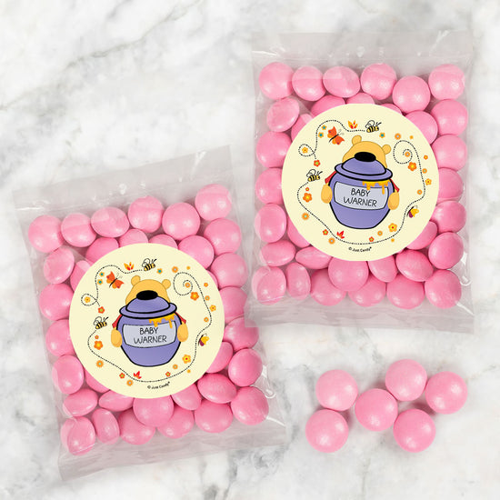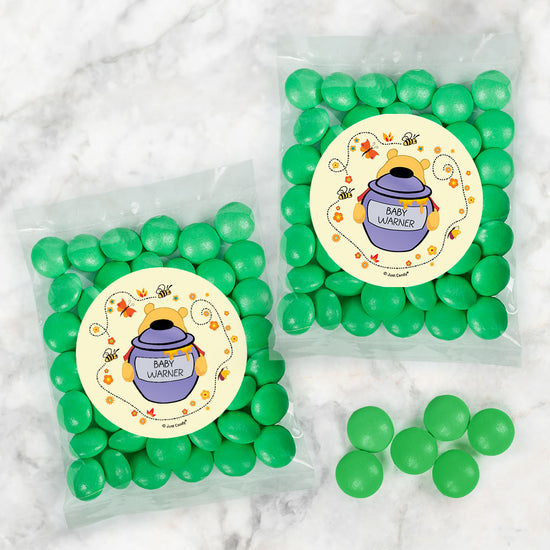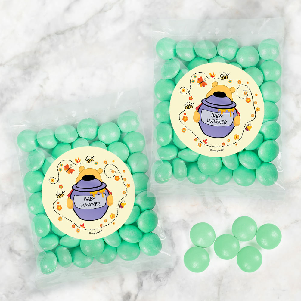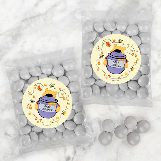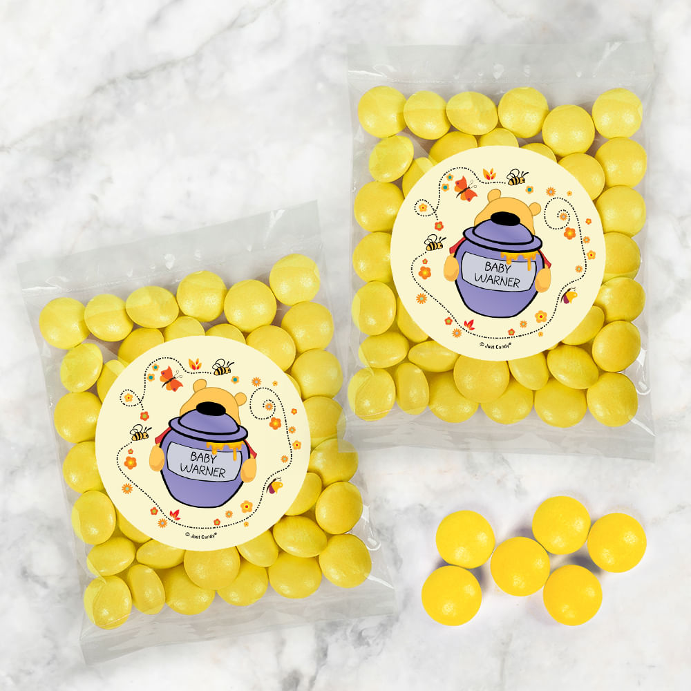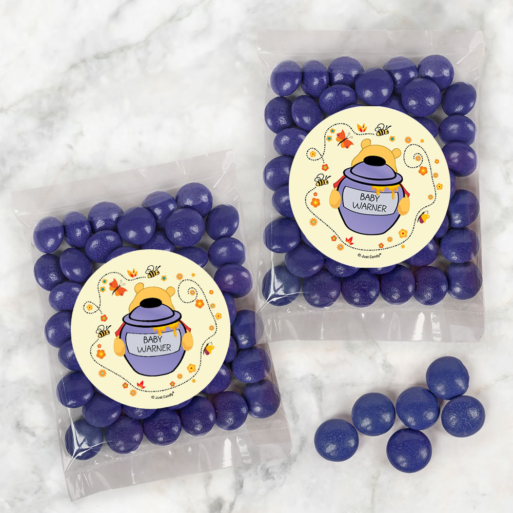 Personalized Baby Shower Pooh Candy Bags with Just Candy Milk Chocolate Gems