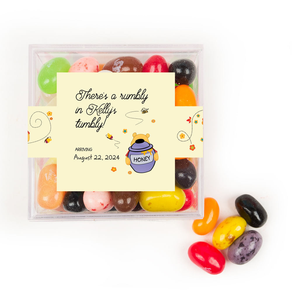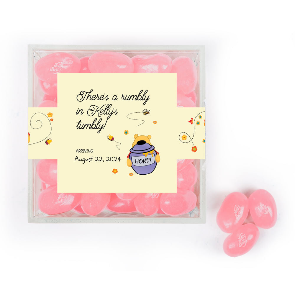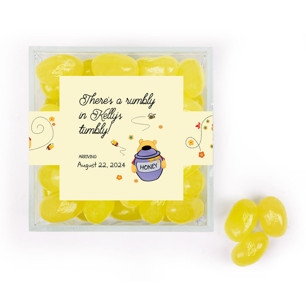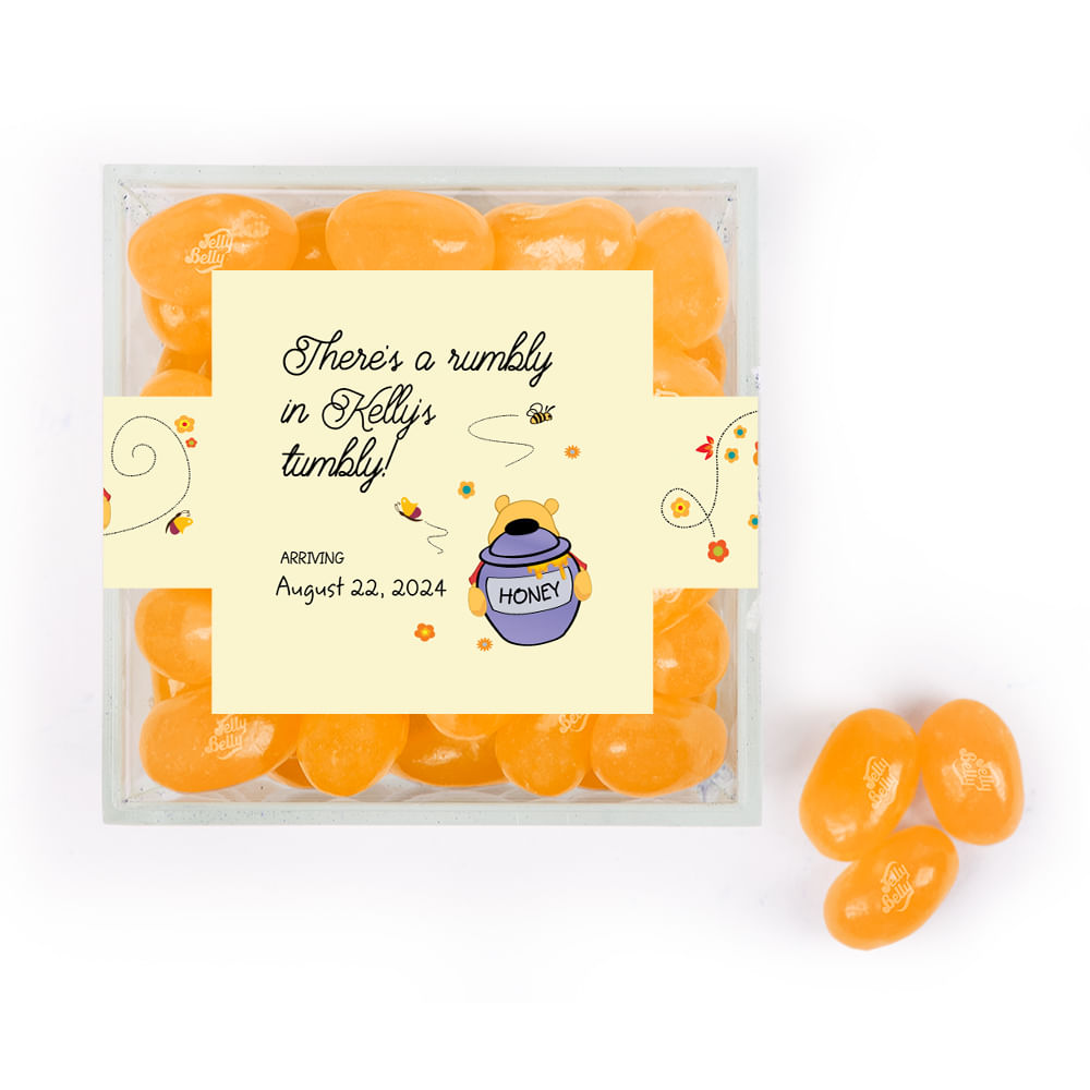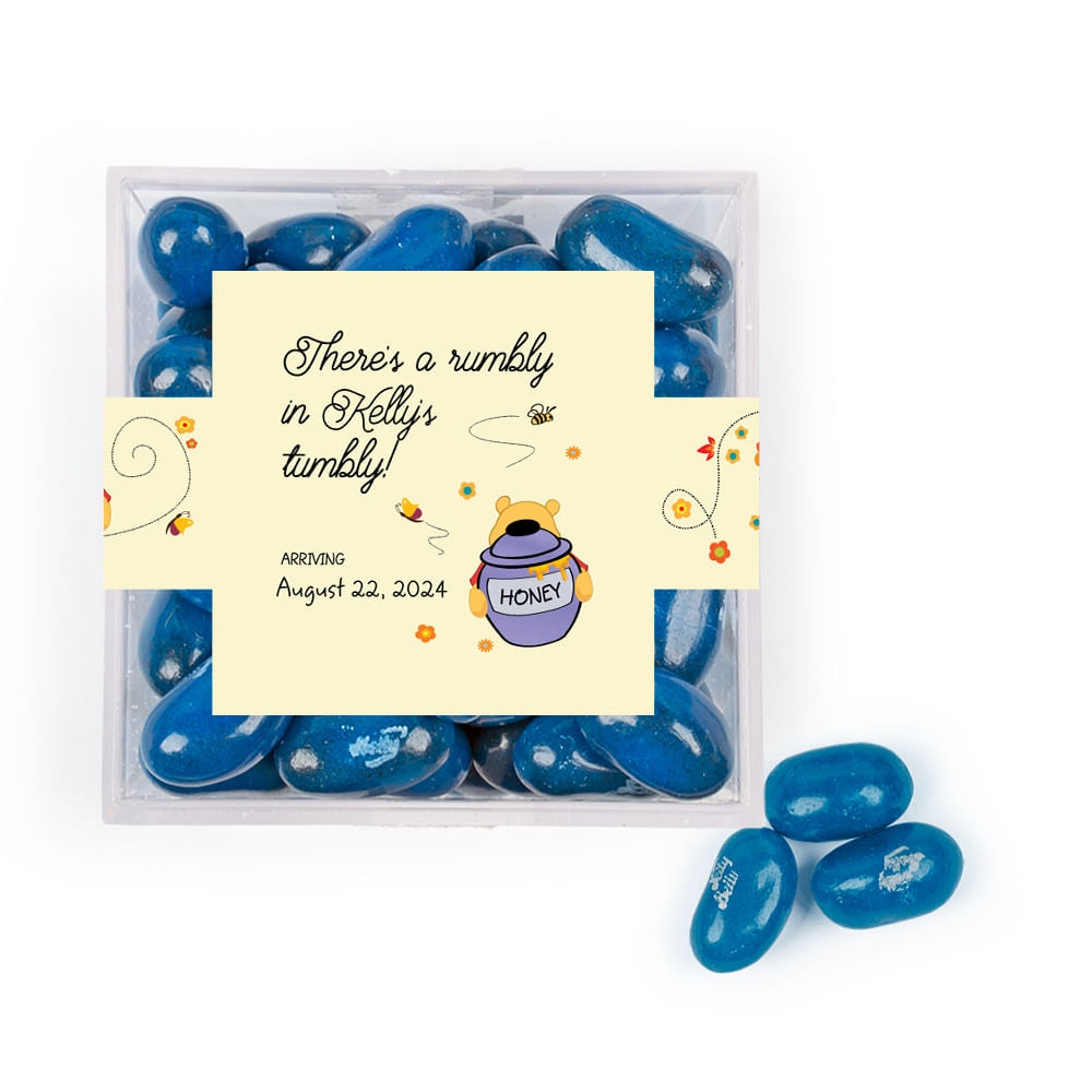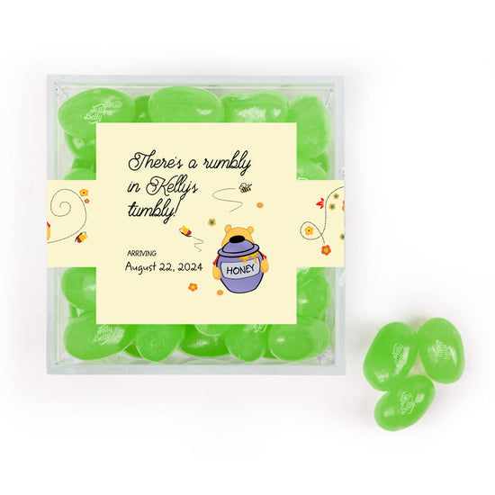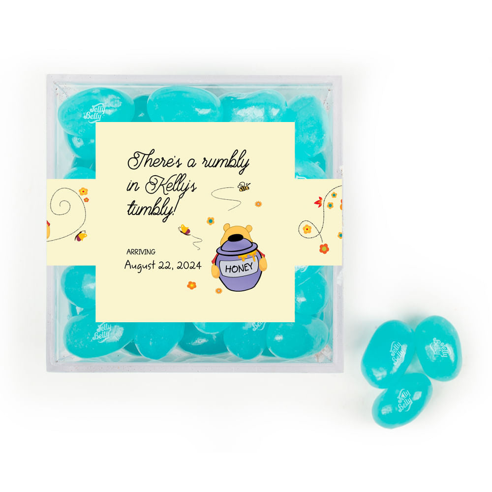 Personalized Baby Shower Pooh Favor Cube with Jelly Belly Jelly Beans
