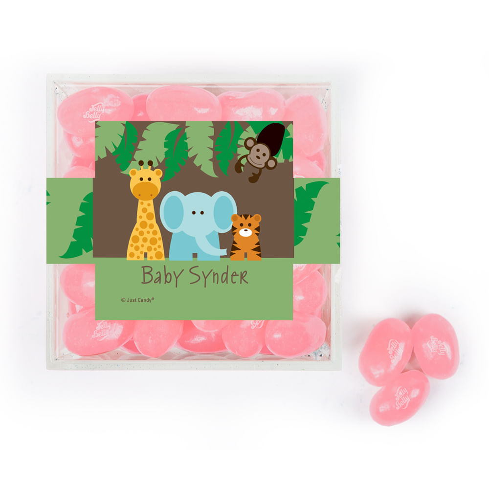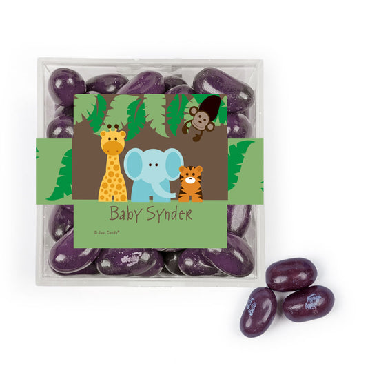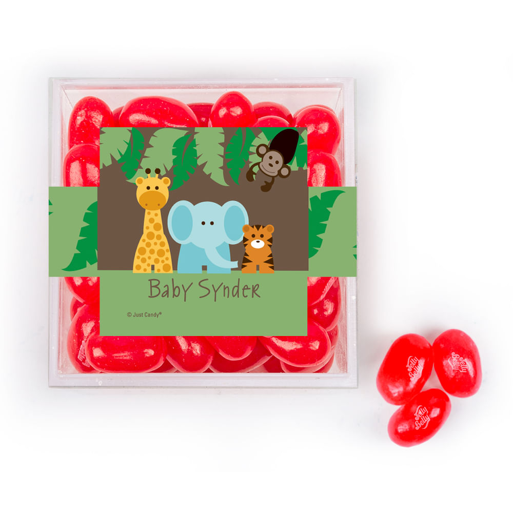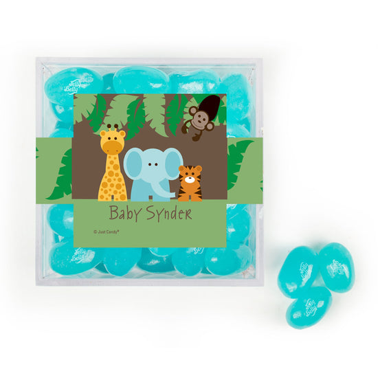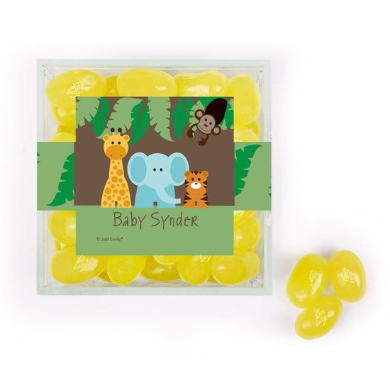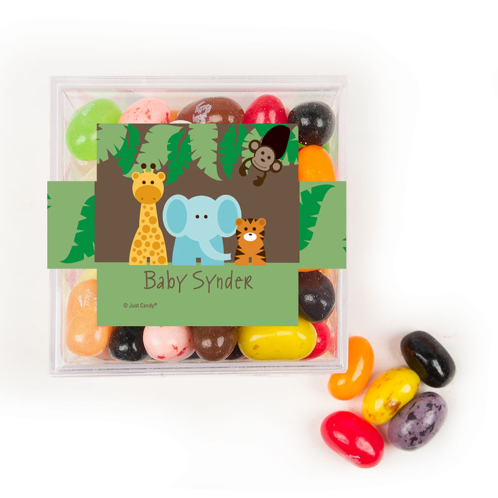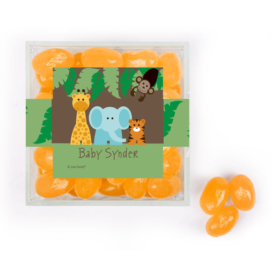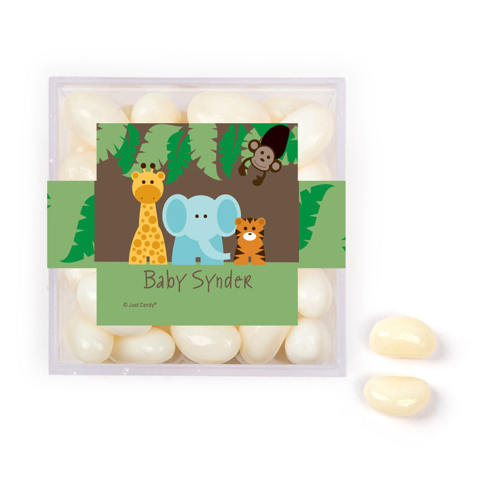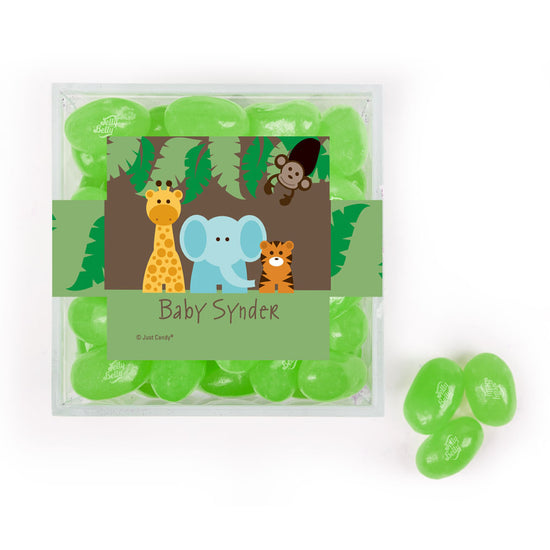 Personalized Baby Shower Jungle Safari Animals Favor Cube with Jelly Belly Jelly Beans