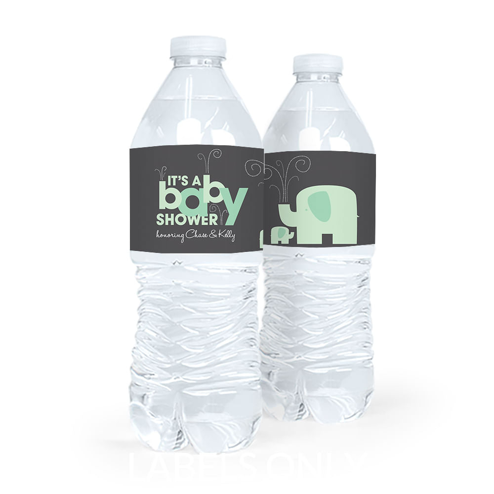 Personalized Baby Shower Elephant Water Bottle Sticker Labels (5 Labels)