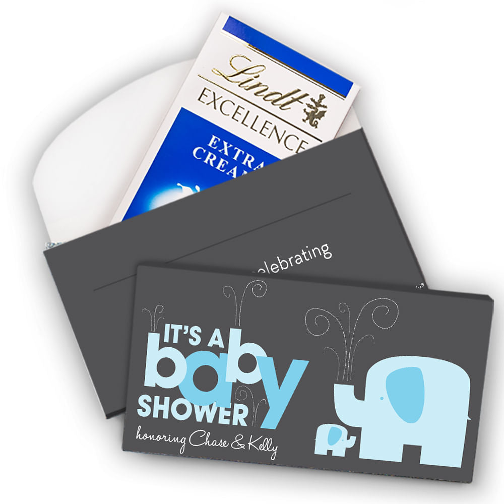 Deluxe Personalized Baby Shower Elephants Lindt Chocolate Bar in Gift Box (3.5oz)