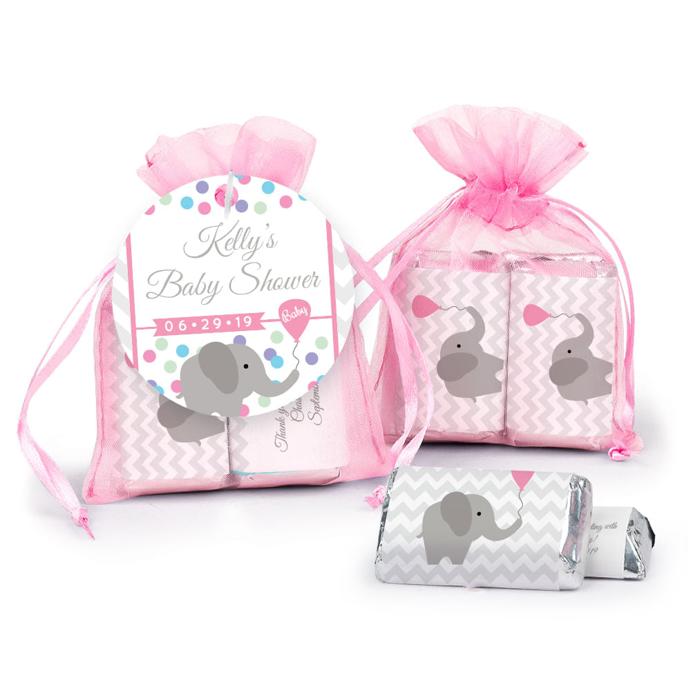 Personalized Baby Shower Chevron Elephant Hershey's Miniatures in Organza Bags with Gift Tag
