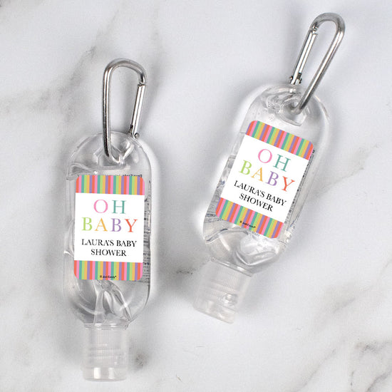 Personalized Baby Shower Happy Baby Hand Sanitizer with Carabiner 1.fl. Oz.