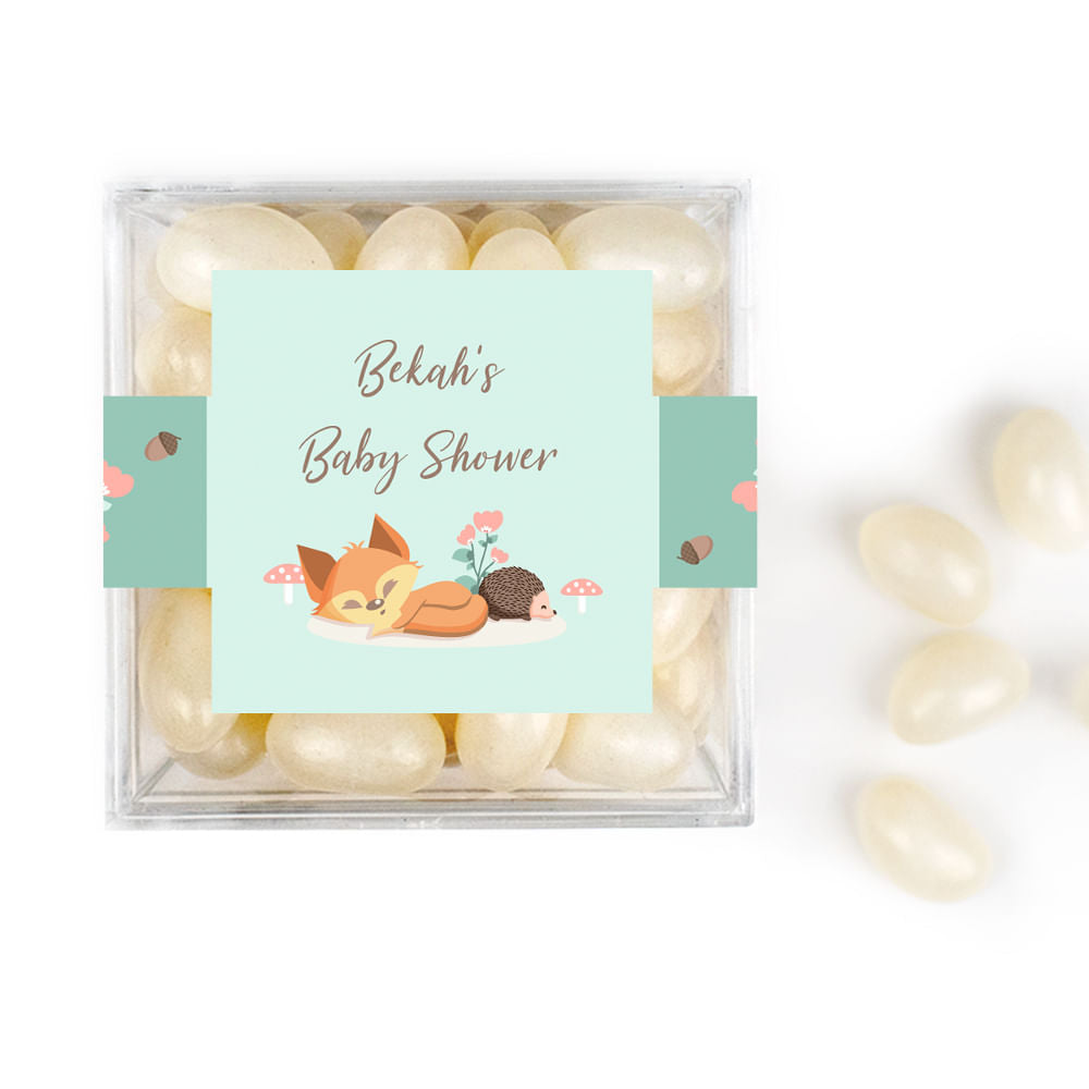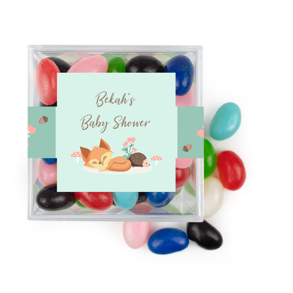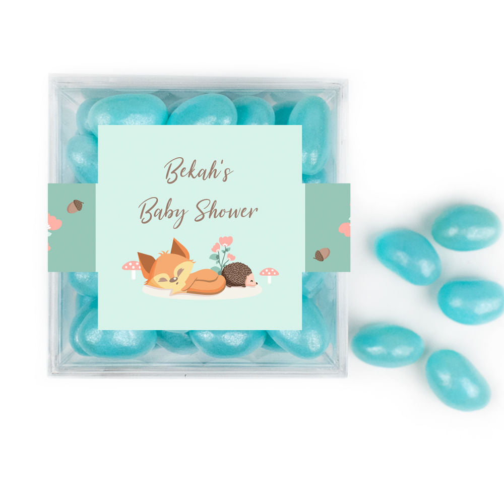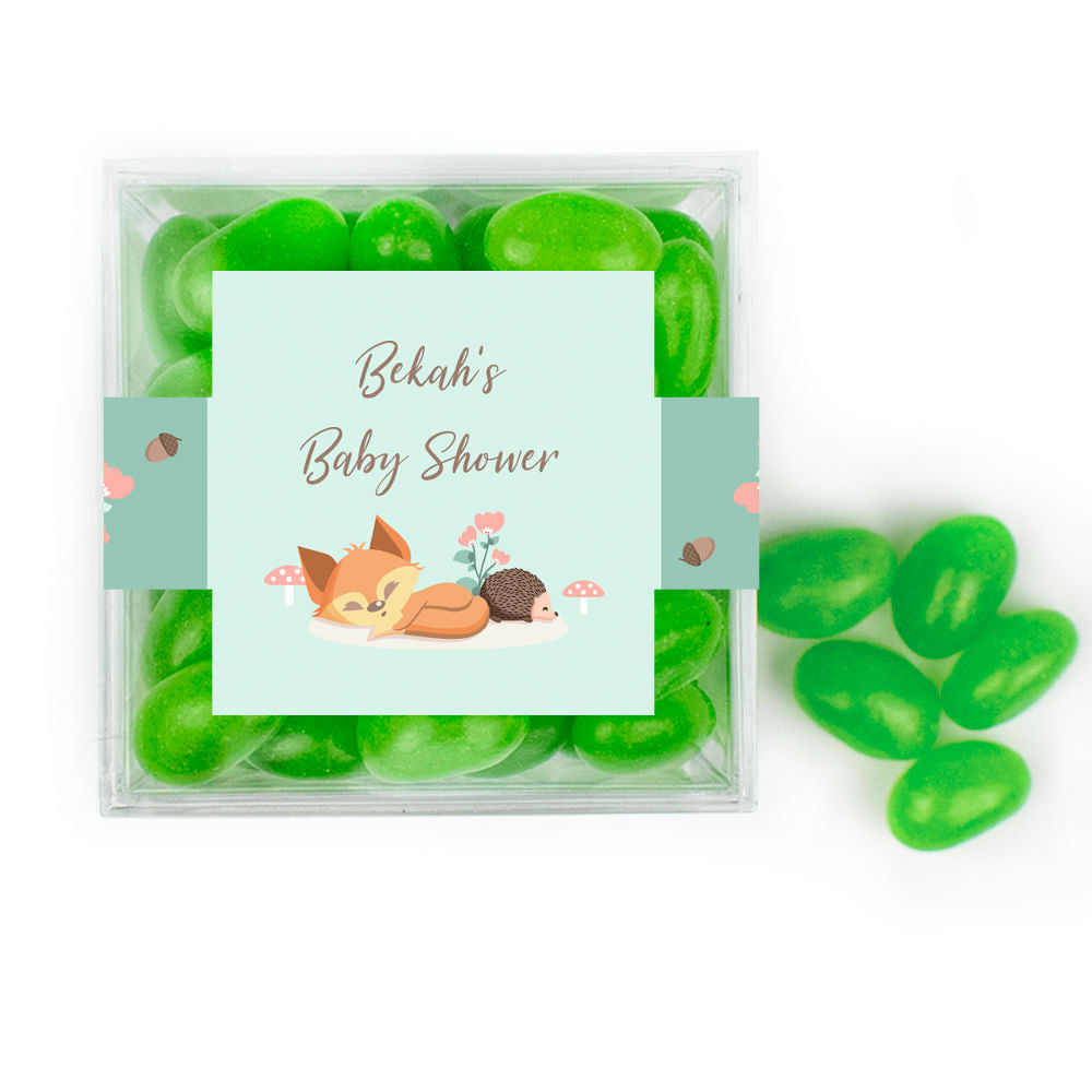 Personalized Baby Shower Woodland Buddies JUST CANDY® favor cube with Jelly Beans