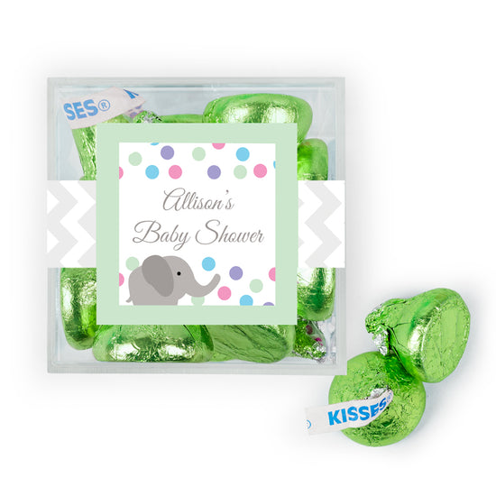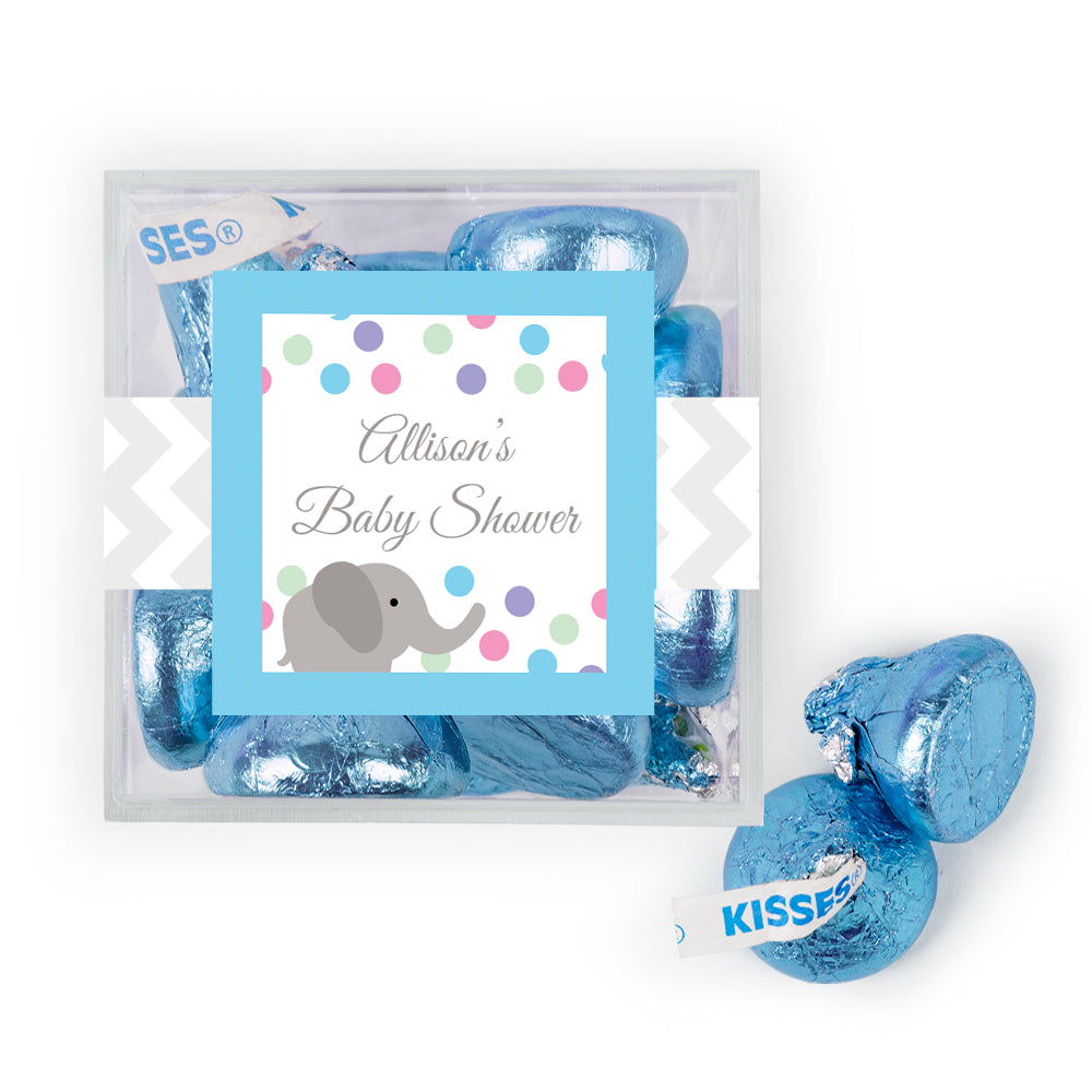 Personalized Baby Shower Elephant Favor Cube with Hershey's Kisses