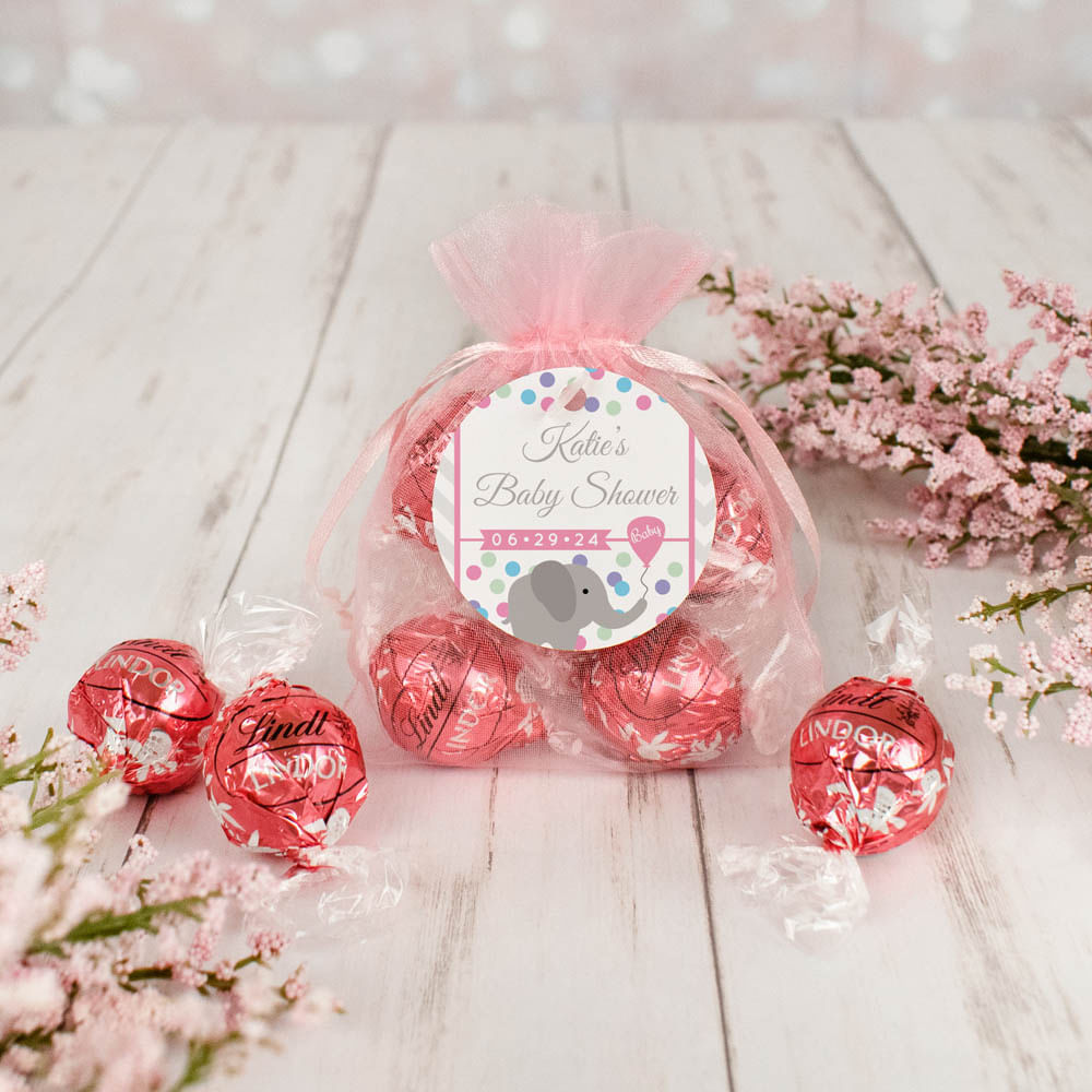Personalized Baby Shower Elephant Lindt Truffle Organza Bag