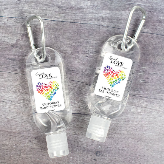 Personalized Hand Sanitizer with Carabiner Baby Shower 1 fl. oz bottle - Love Rainbow