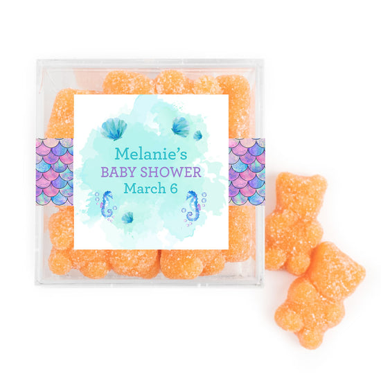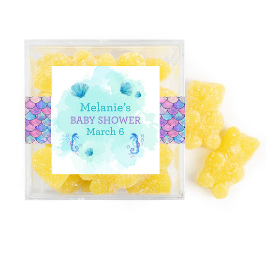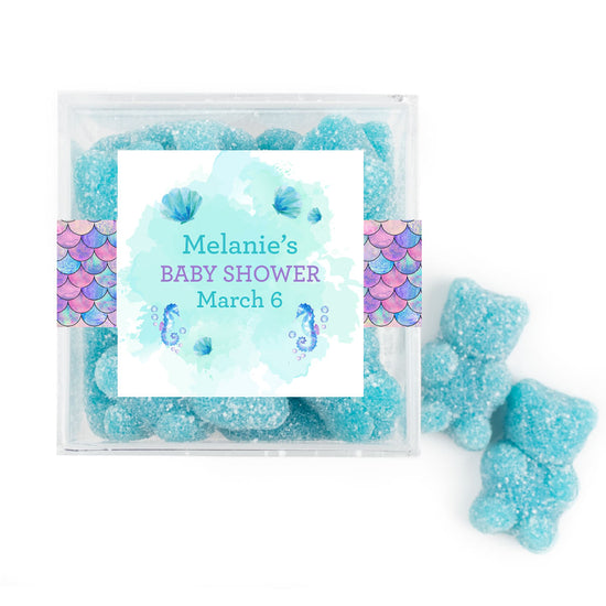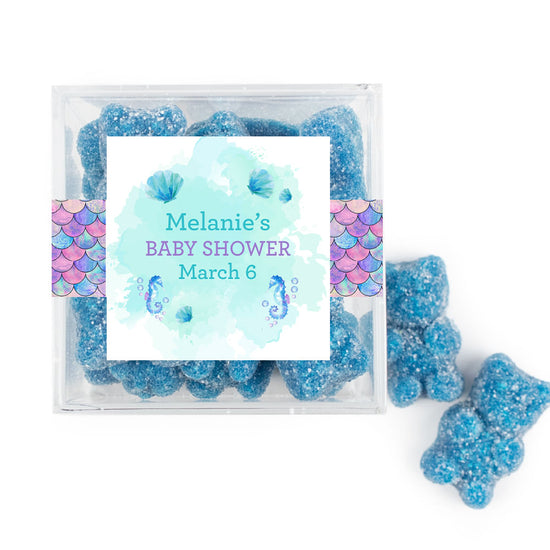 Personalized Baby Shower Mermaid Favor Cube with Gummy Bears