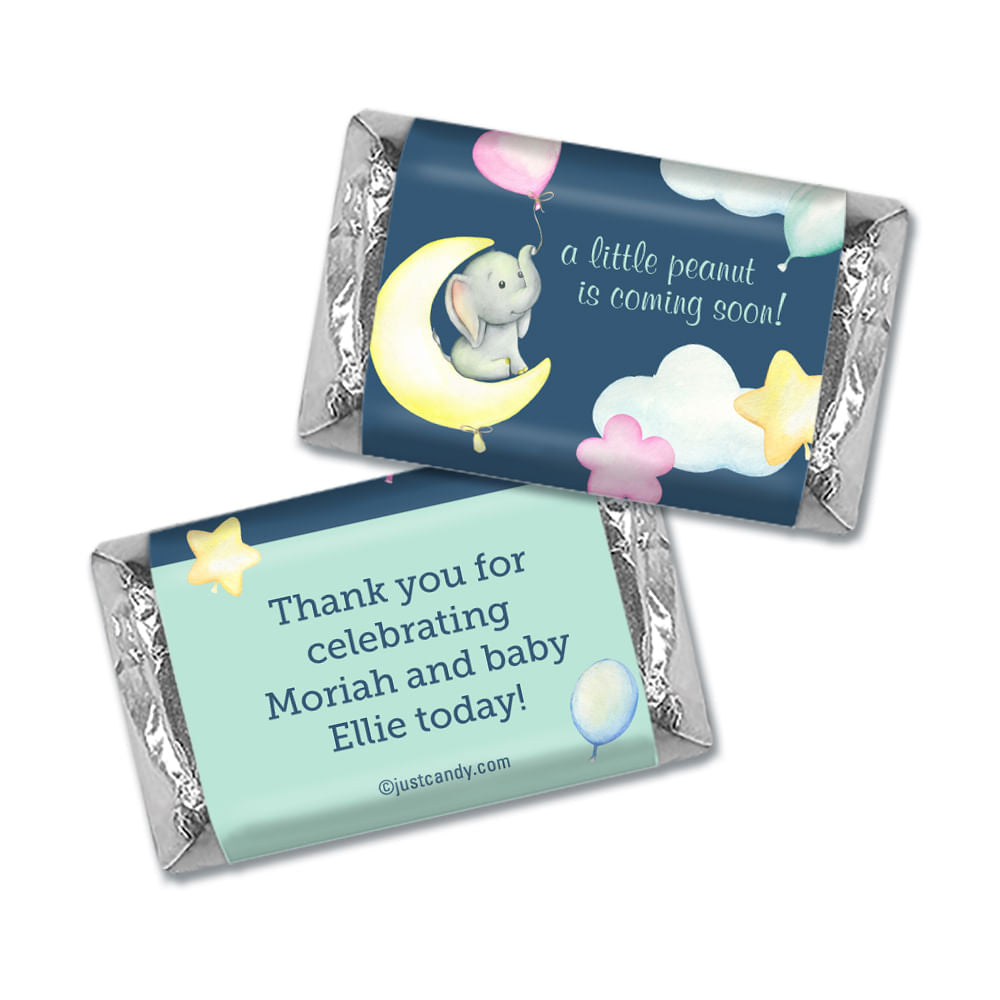 Personalized Elephant Moon Baby Shower Hershey's Miniatures Wrappers
