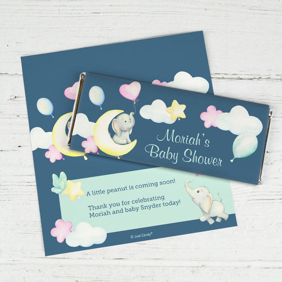 Personalized Elephant Moon Baby Shower Chocolate Bar Wrappers Only