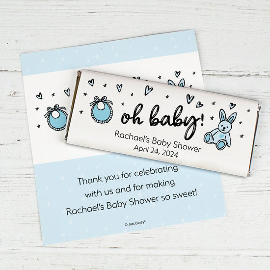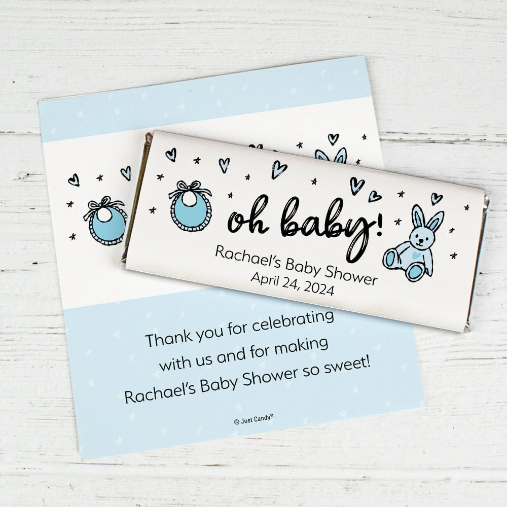 Personalized Baby Shower Icons Oh Baby Blue Chocolate Bar Wrappers