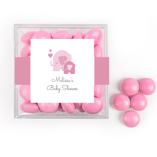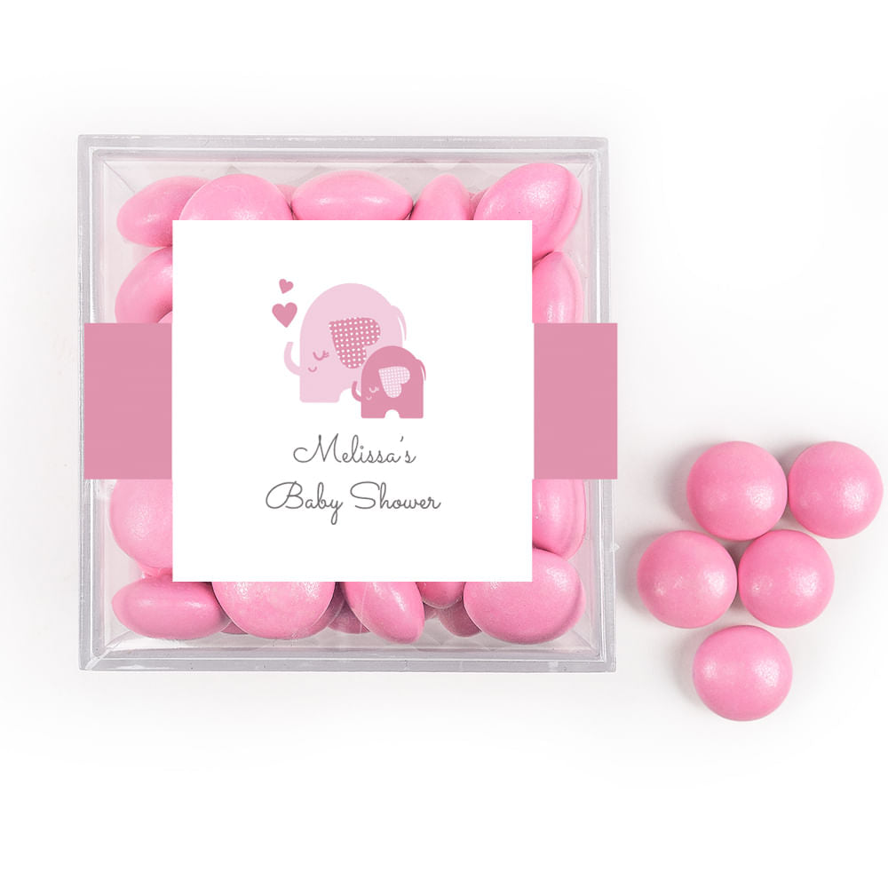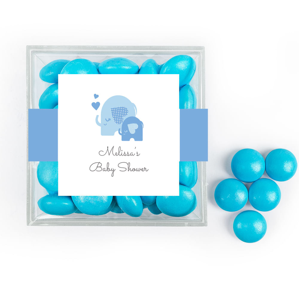 Personalized Baby Shower Elephant Hearts JUST CANDY® favor cube with Just Candy Milk Chocolate Minis