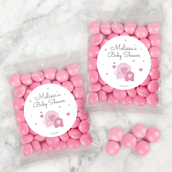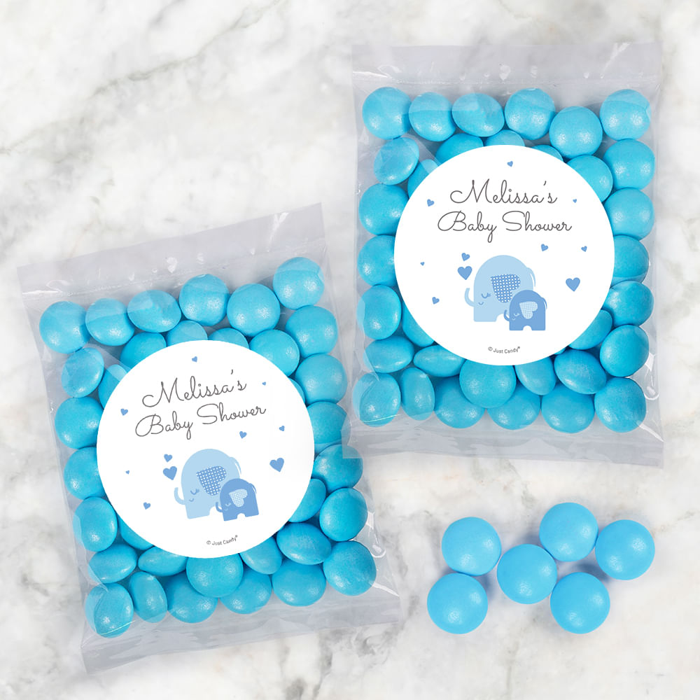 Personalized Baby Shower Boy Elephant Hearts Candy Bags with Just Candy Milk Chocolate Gems