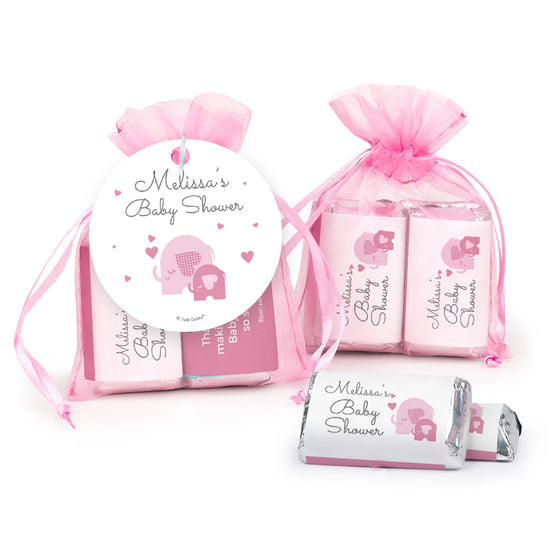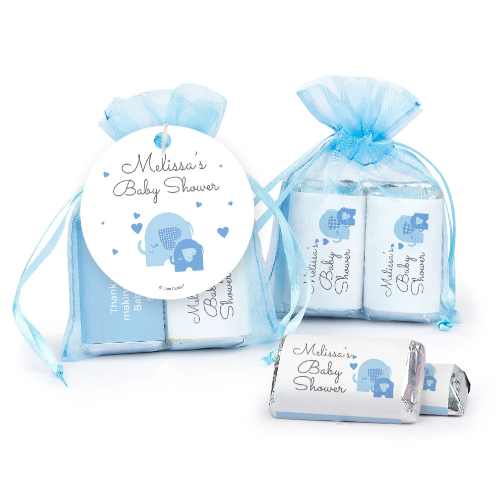 Personalized Baby Shower Elephant Hearts Miniatures in XS Organza Bag with Gift Tag