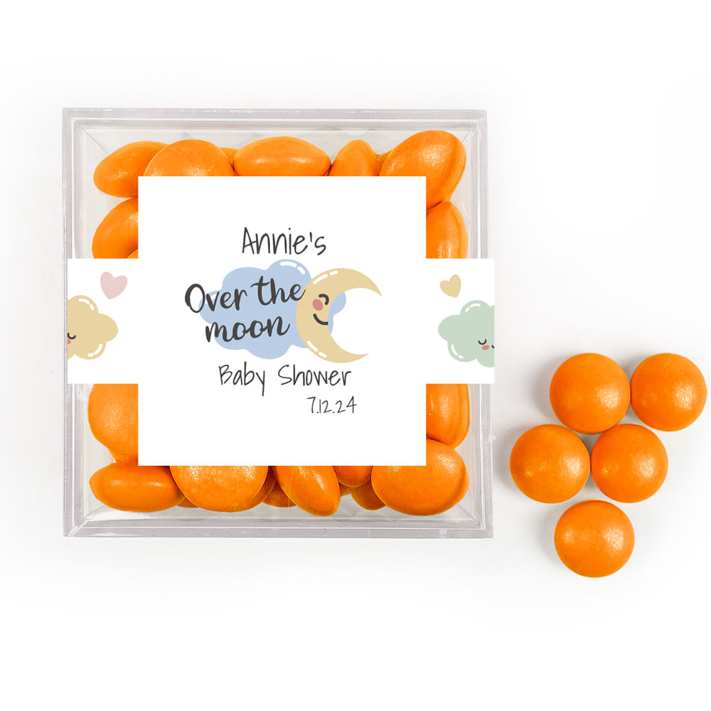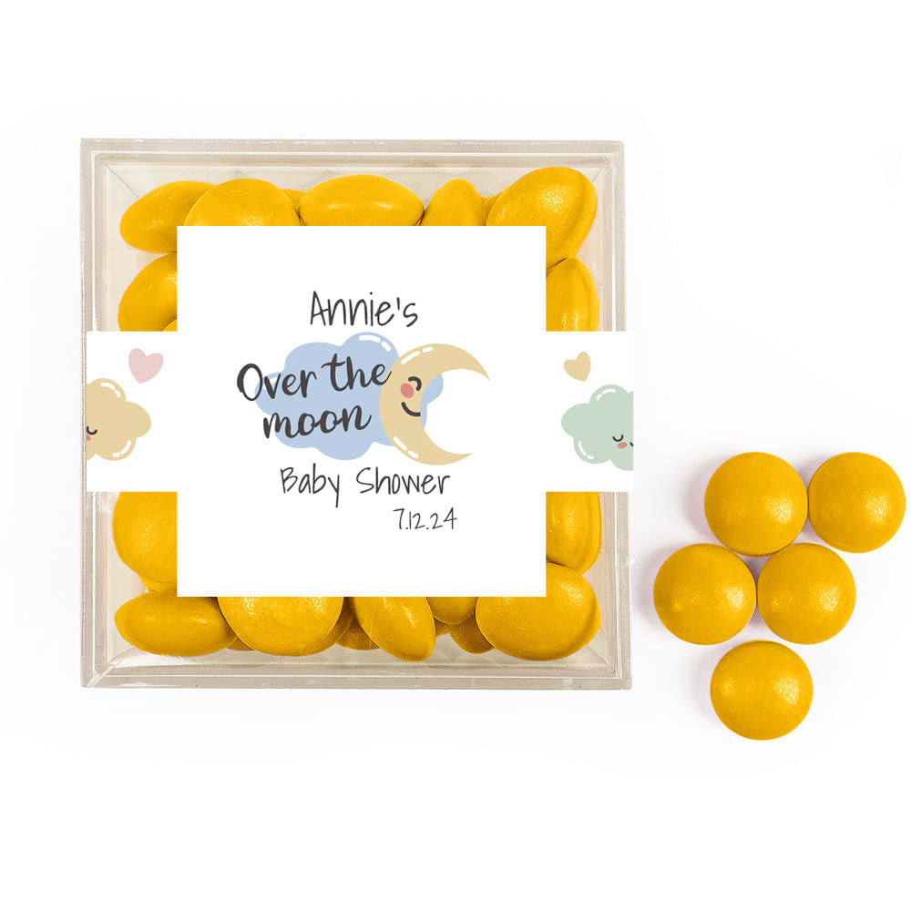 Personalized Baby Shower Over the Moon Favor Cube with Milk Chocolate Minis