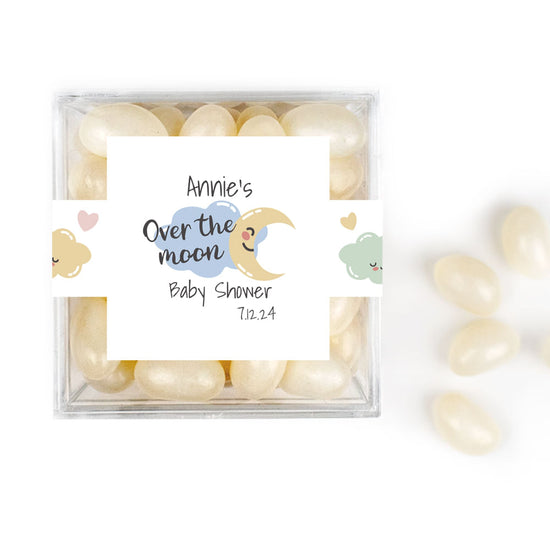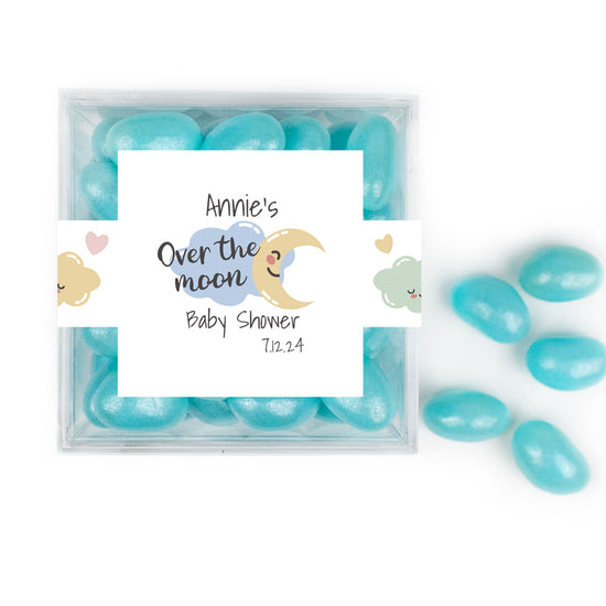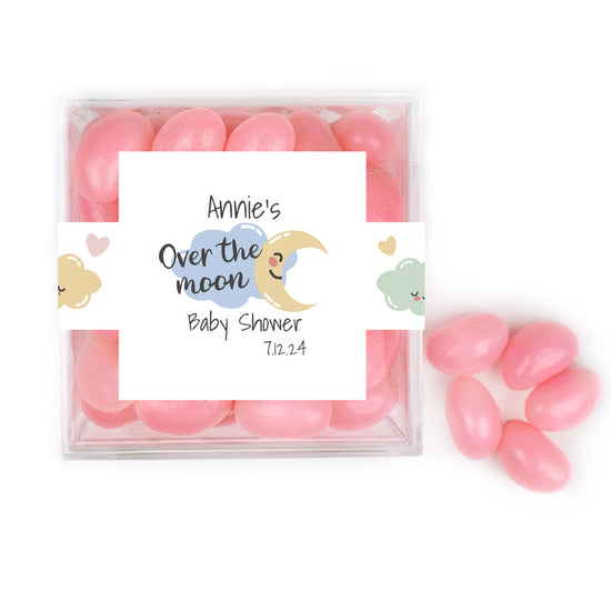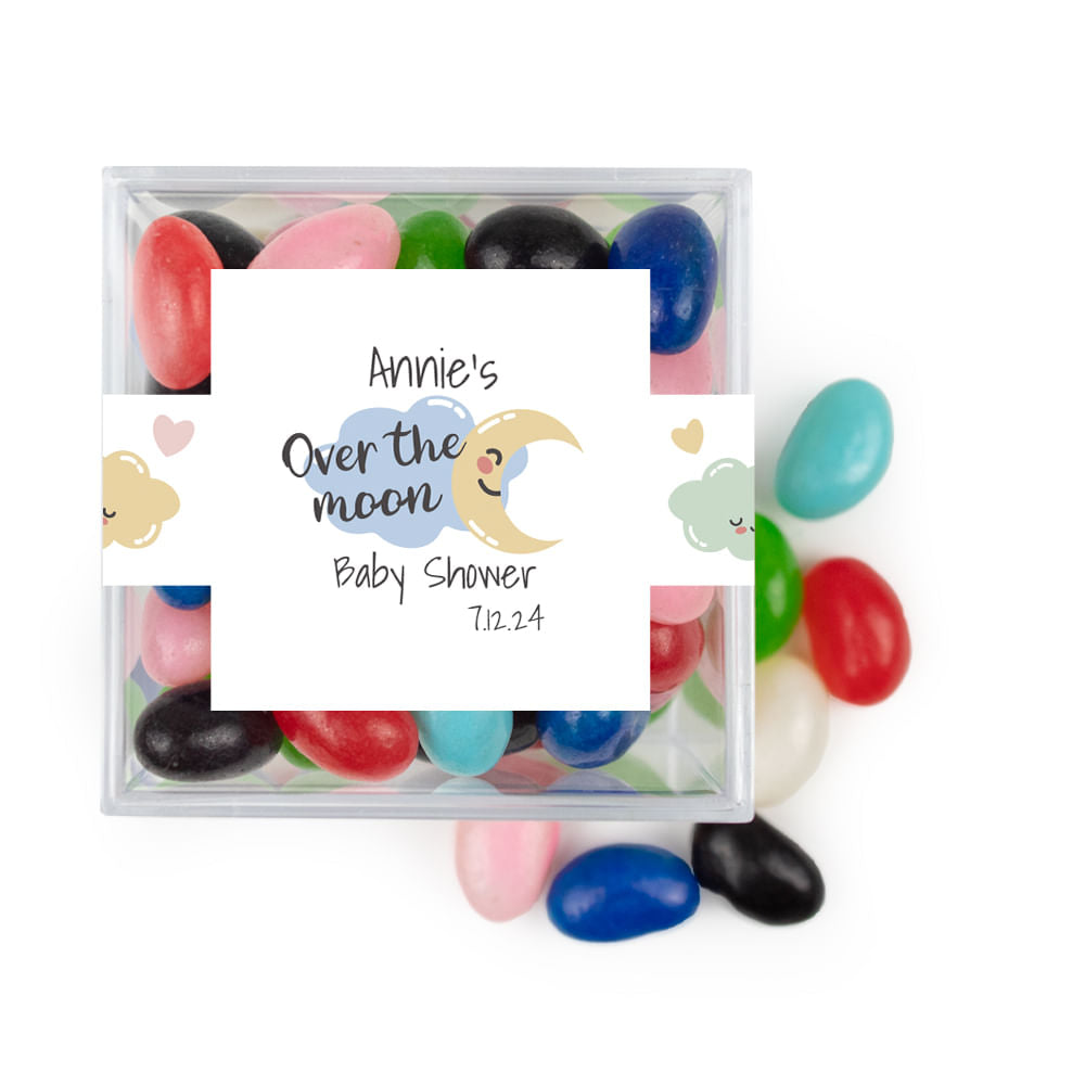 Personalized Baby Shower Over the Moon JUST CANDY® favor cube with Jelly Beans