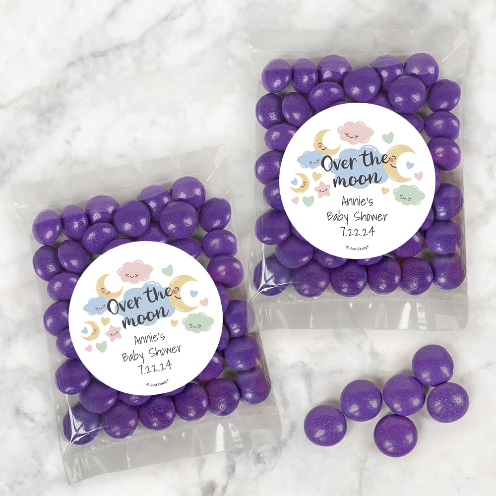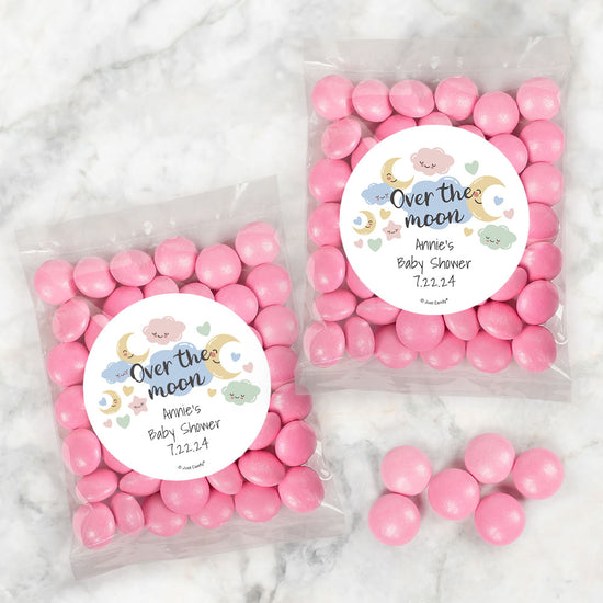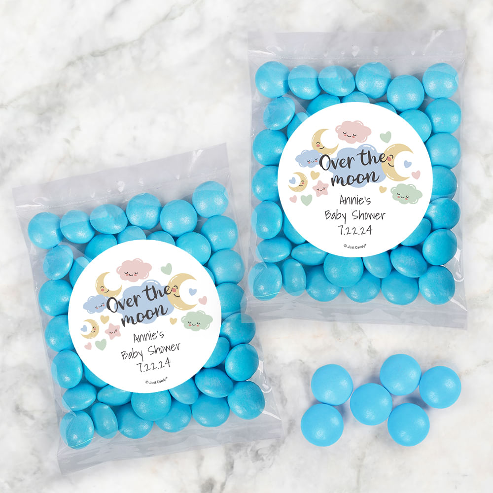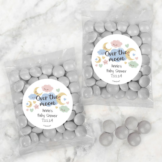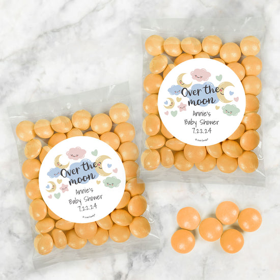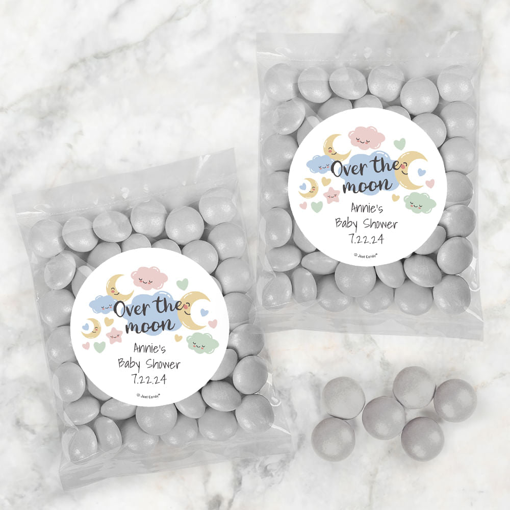Personalized Baby Shower Over the Moon Candy Bags with Just Candy Milk Chocolate Gems