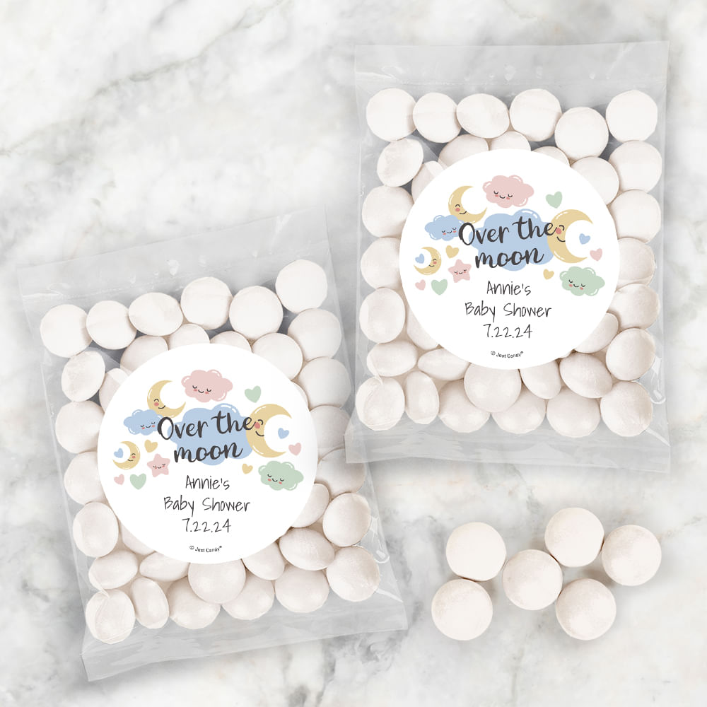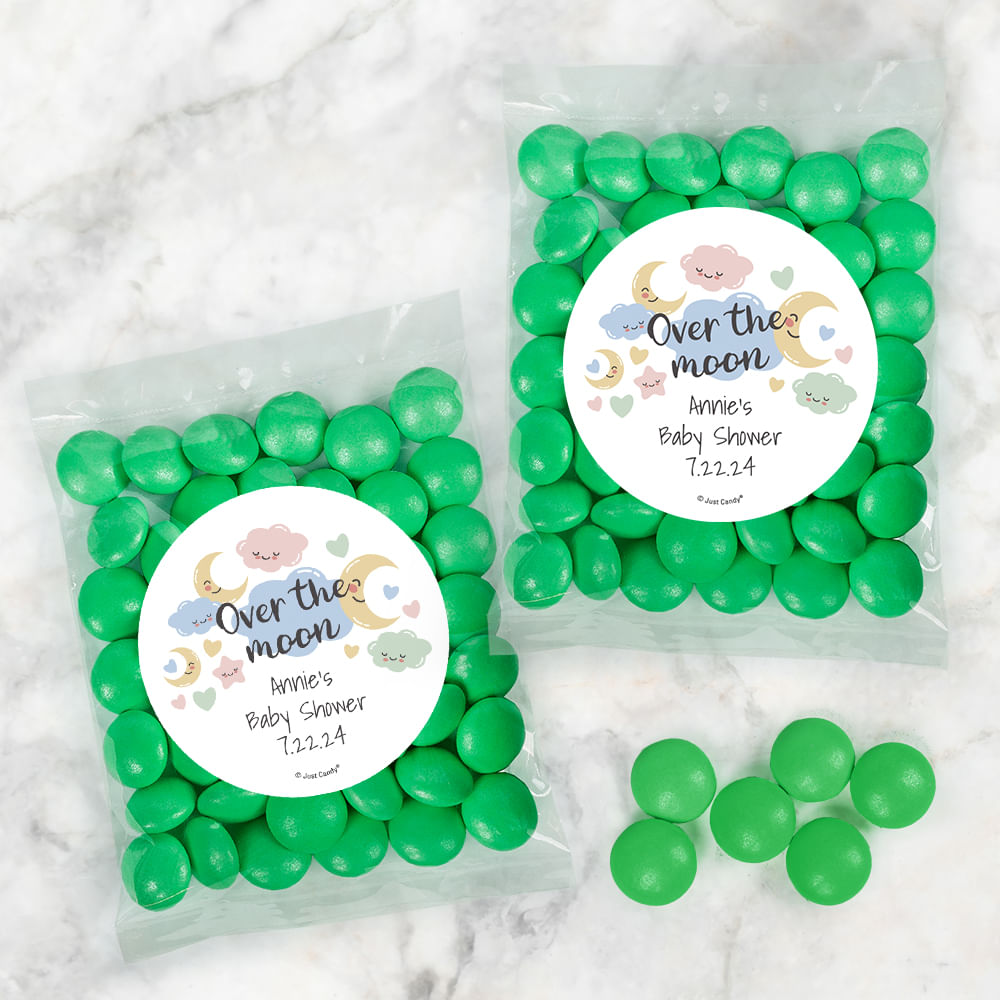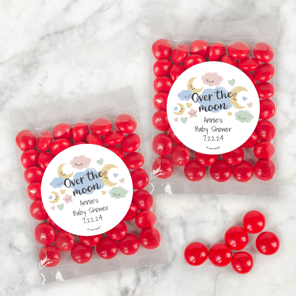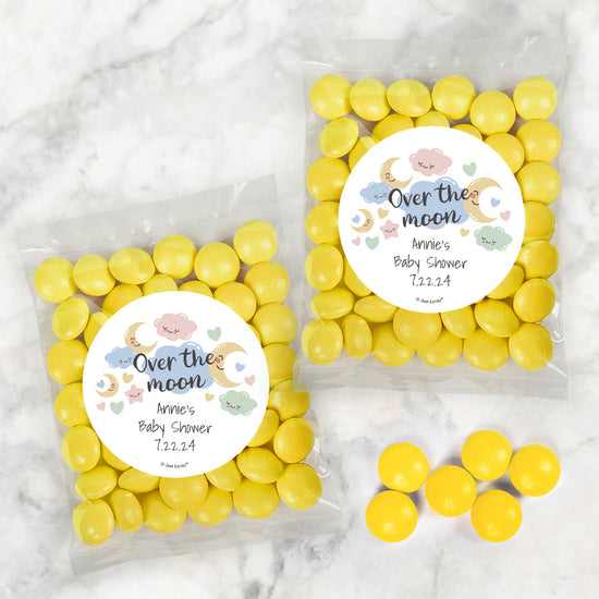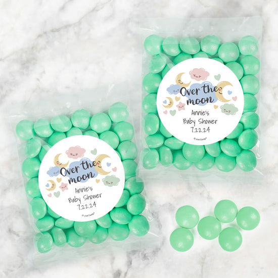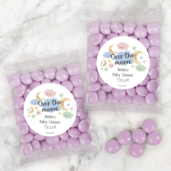 Personalized Baby Shower Over the Moon Candy Bags with Just Candy Milk Chocolate Gems