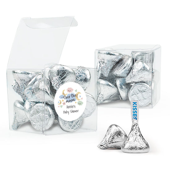 Baby Shower Over the Moon Clear Gift Box with Sticker - Approx. 16 Hershey's Kisses