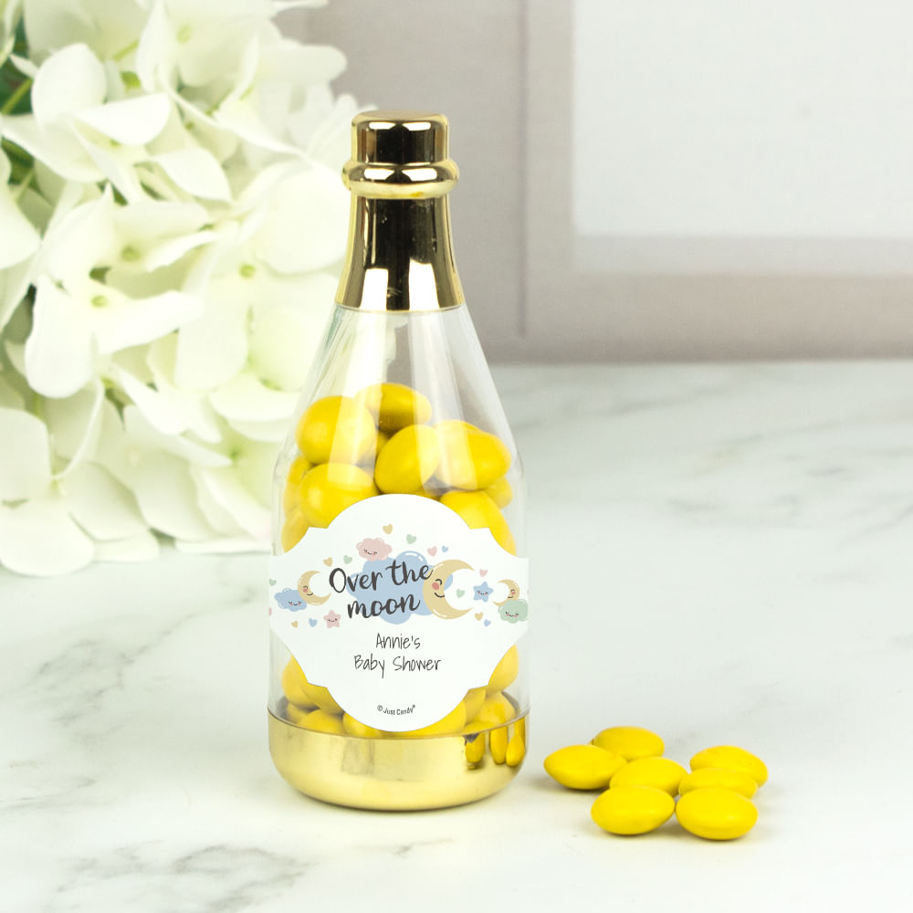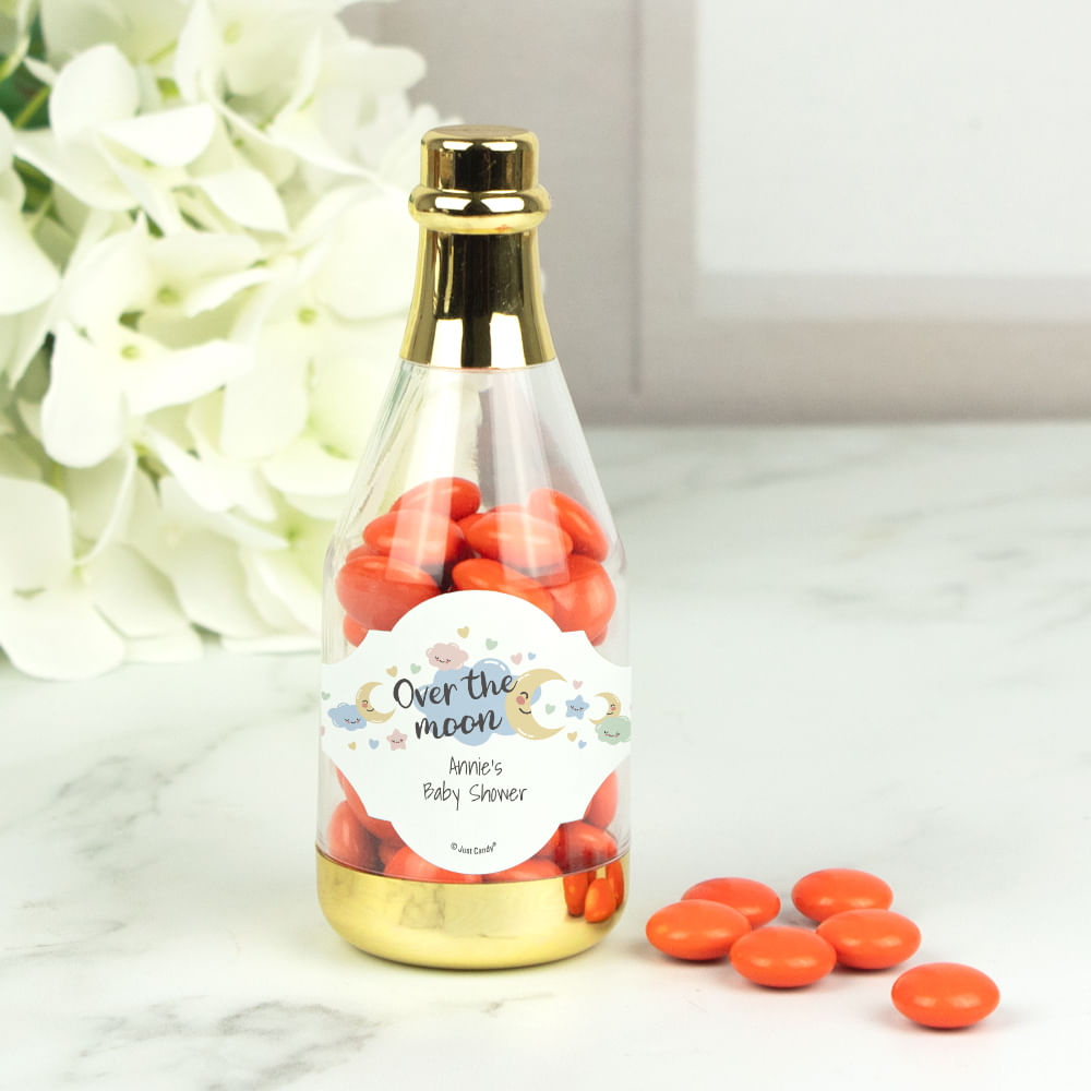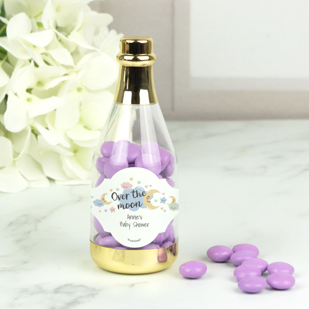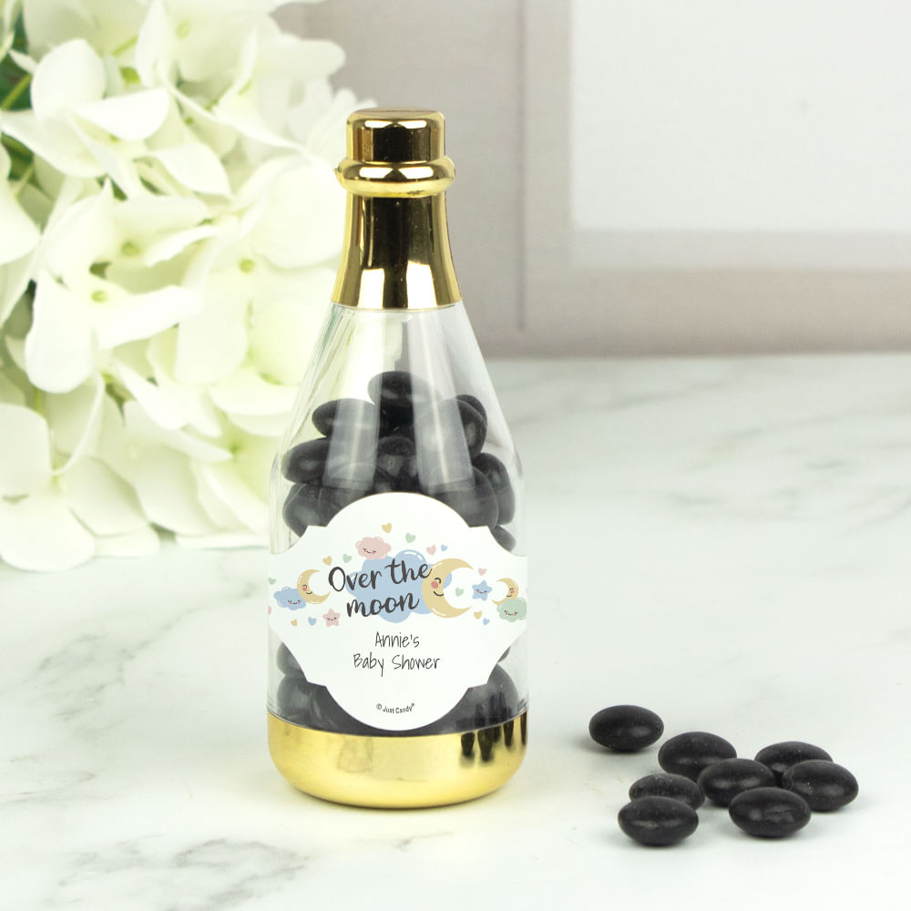 Personalized Baby Shower Over the Moon Champagne Bottle with Milk Chocolate Minis