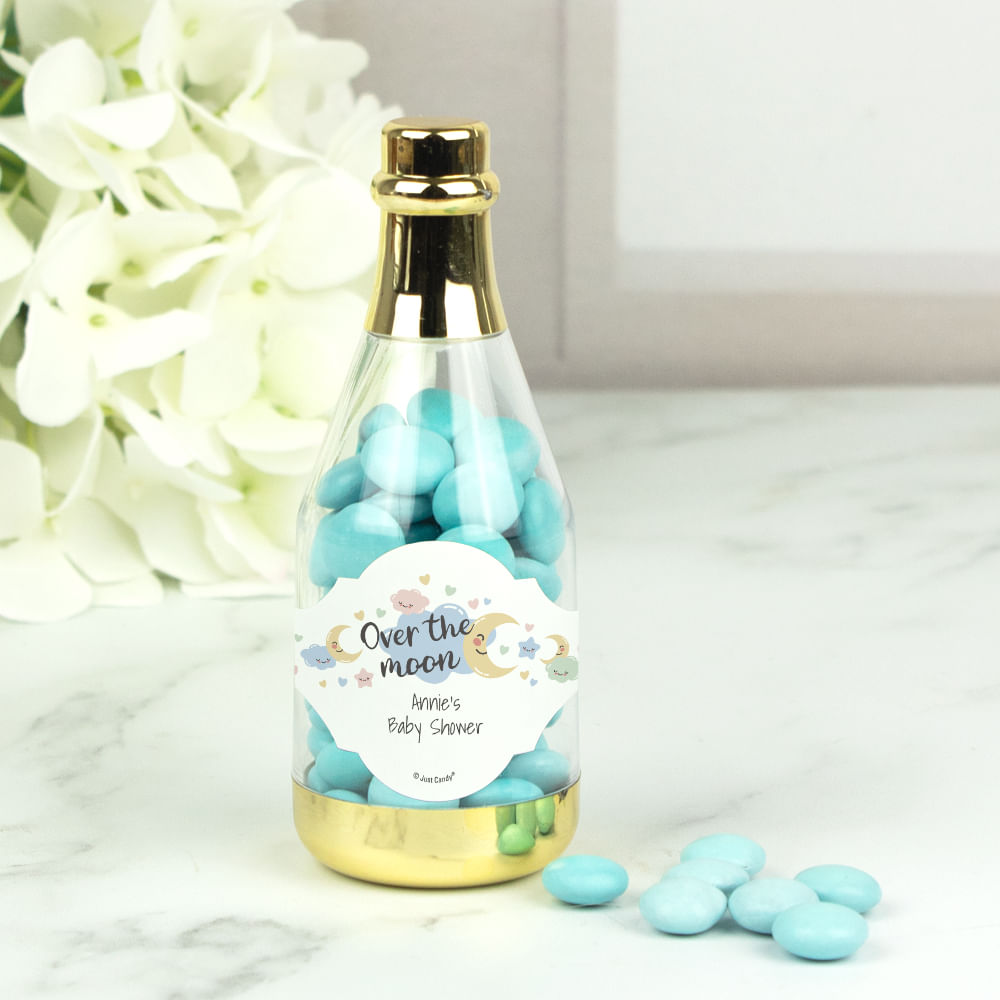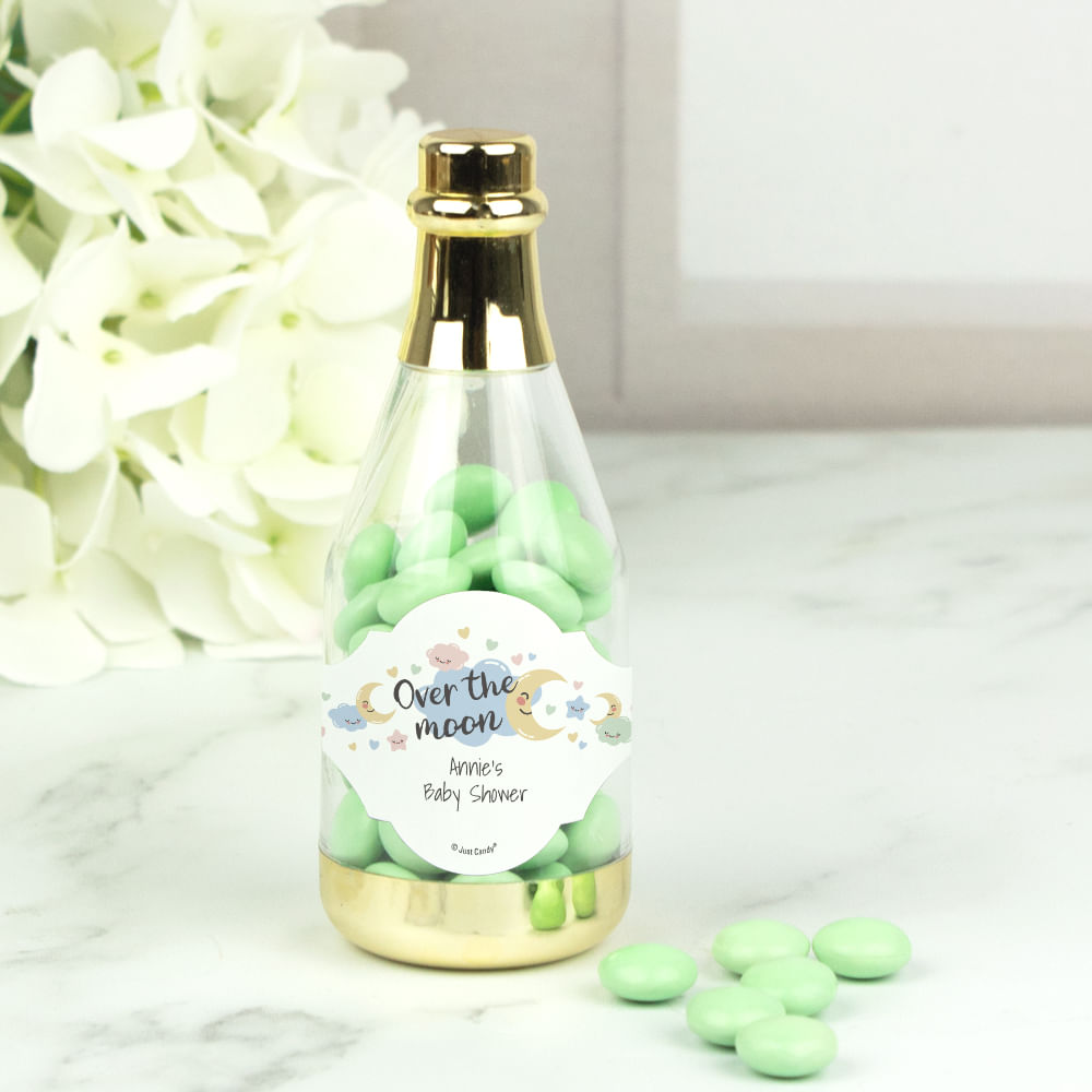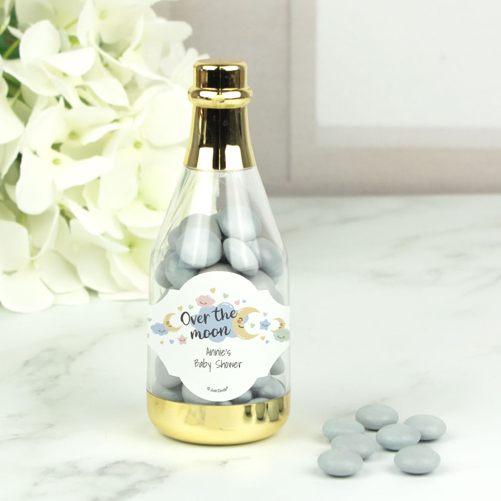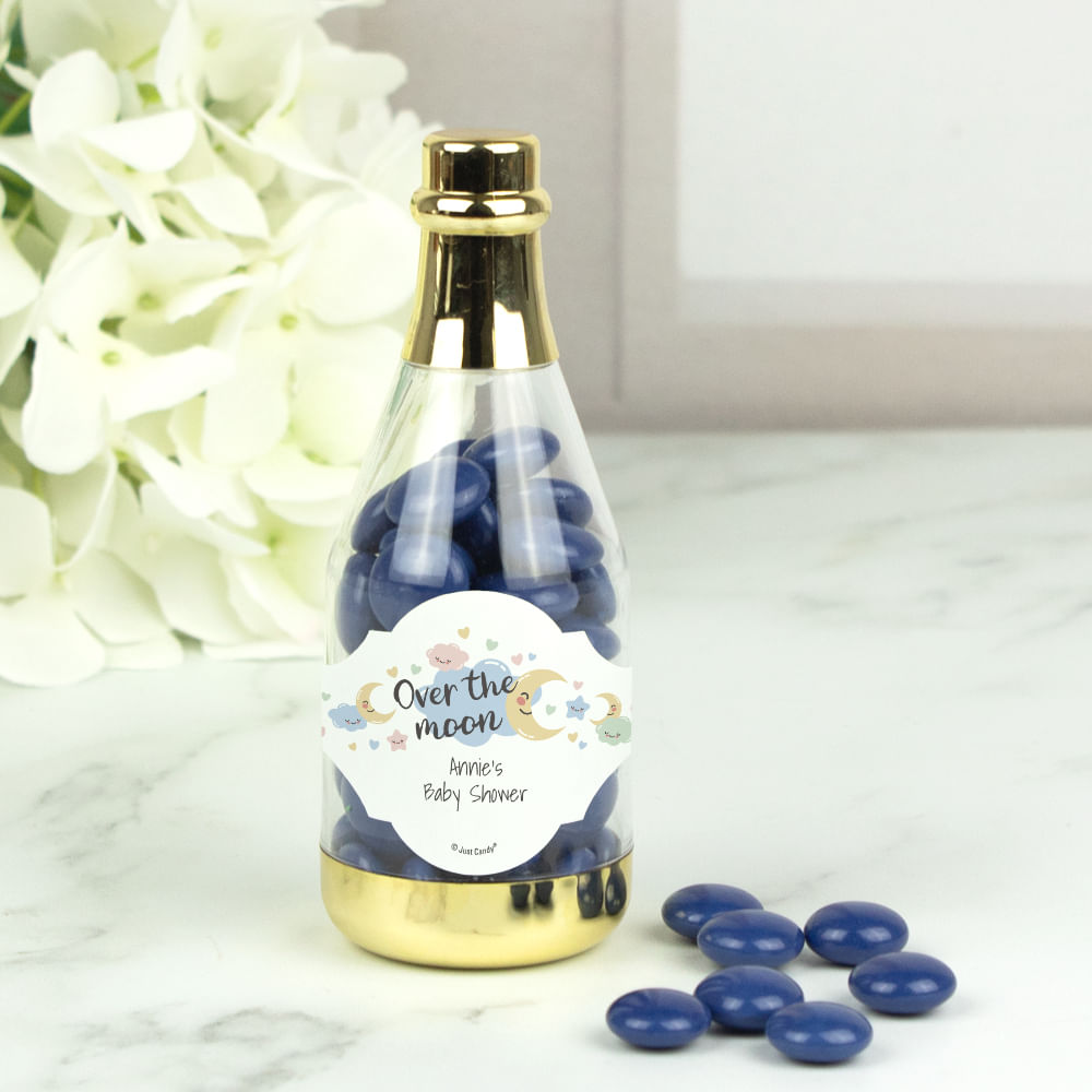 Personalized Baby Shower Over the Moon Champagne Bottle with Milk Chocolate Minis