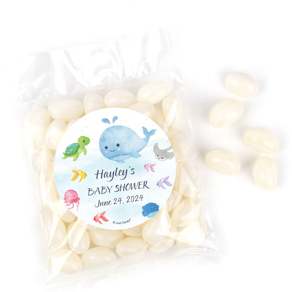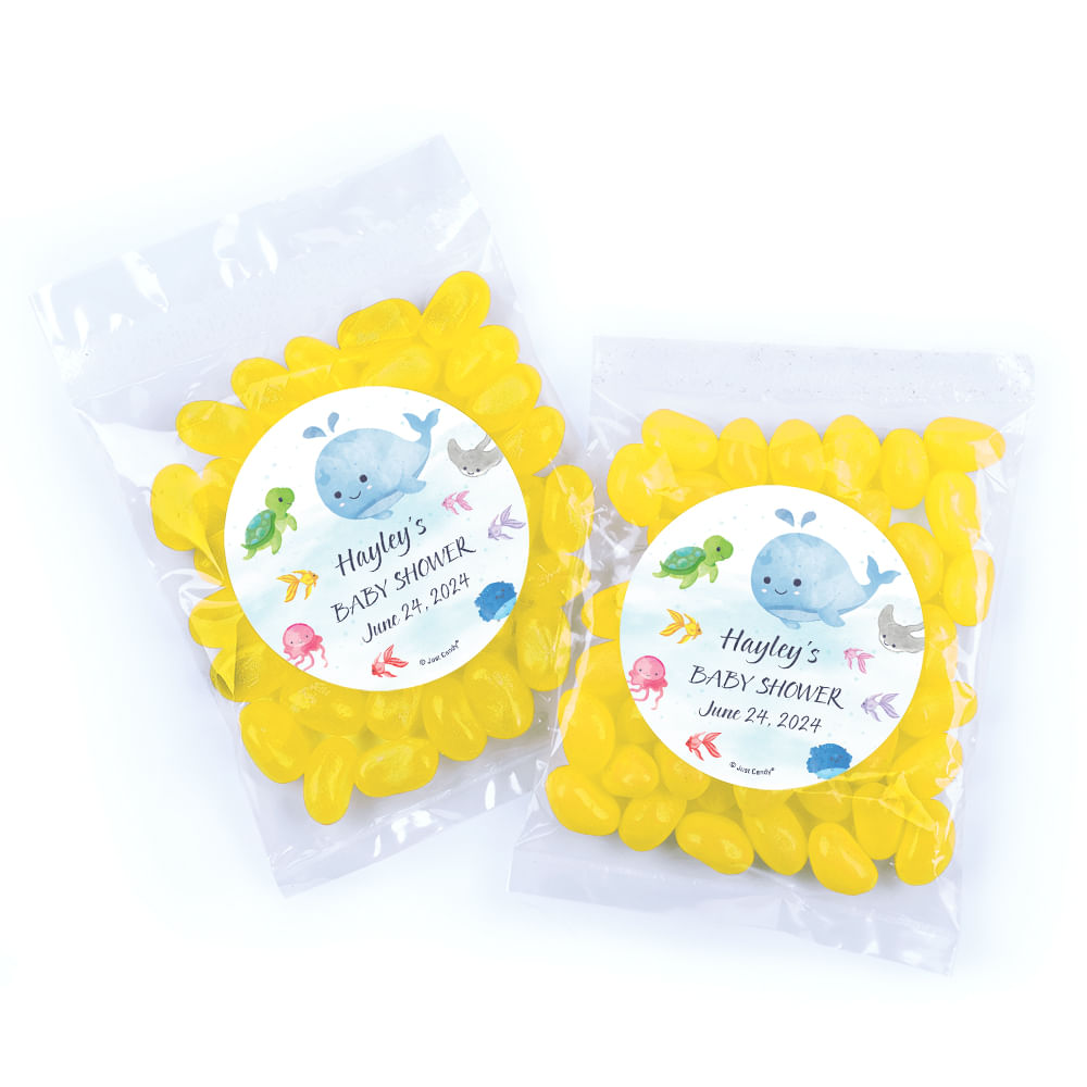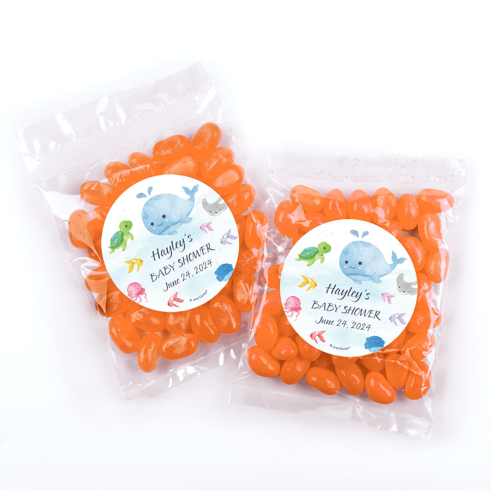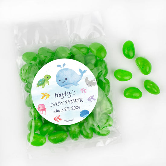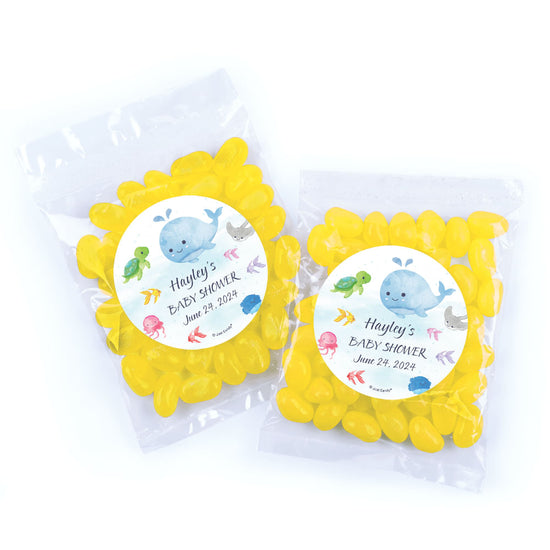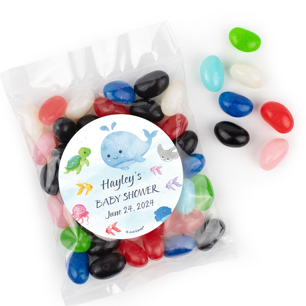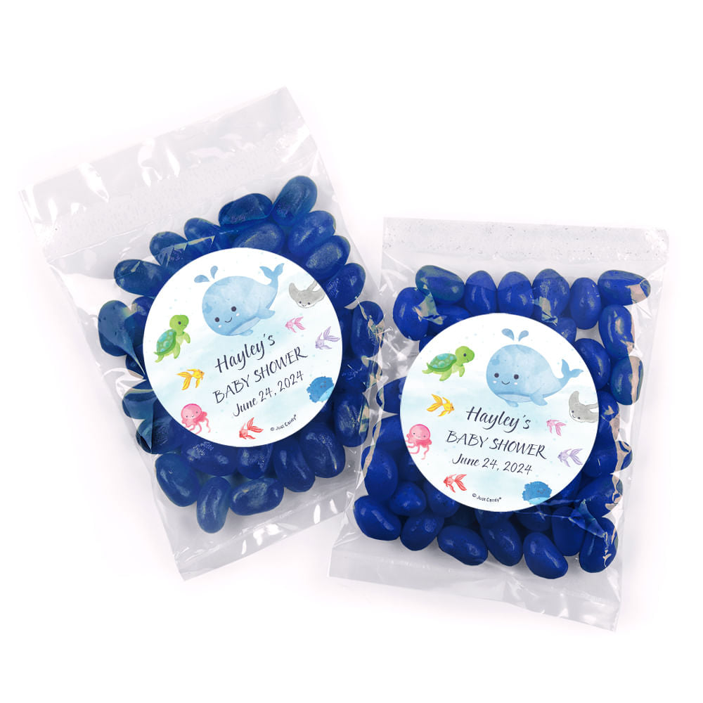 Personalized Baby Shower Whale Candy Bags with Jelly Beans