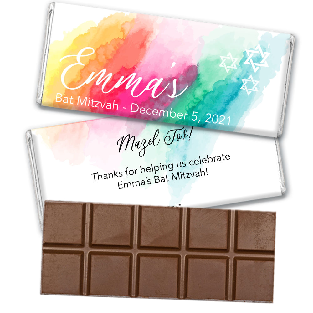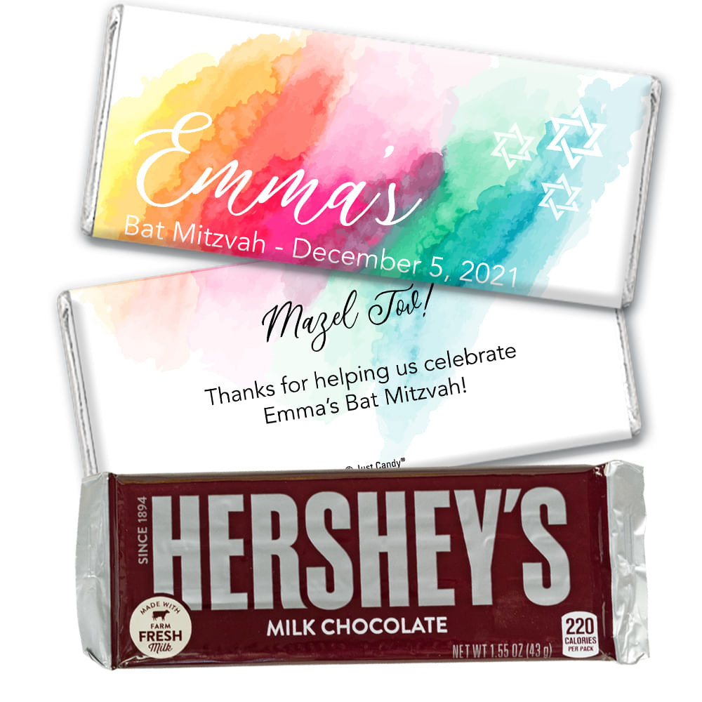 Personalized Bat Mitzvah Rainbow Watercolor Hershey's Milk Chocolate Bar & Wrapper