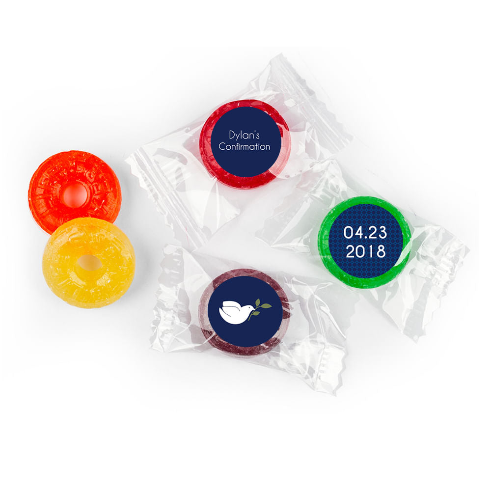 Confirmation Personalized LifeSavers 5 Flavor Hard Candy Peace Dove Navy Blue (300 Pack)