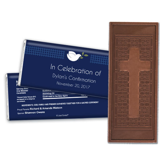 Confirmation Embossed Cross Chocolate Bar Peace Dove Navy Blue